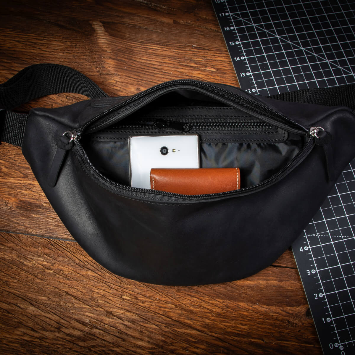 - Карманы: 3 отдельных кармана - основной, внутренний и задний (для мужского кошелька, паспорта, ключей, большой смартфон).