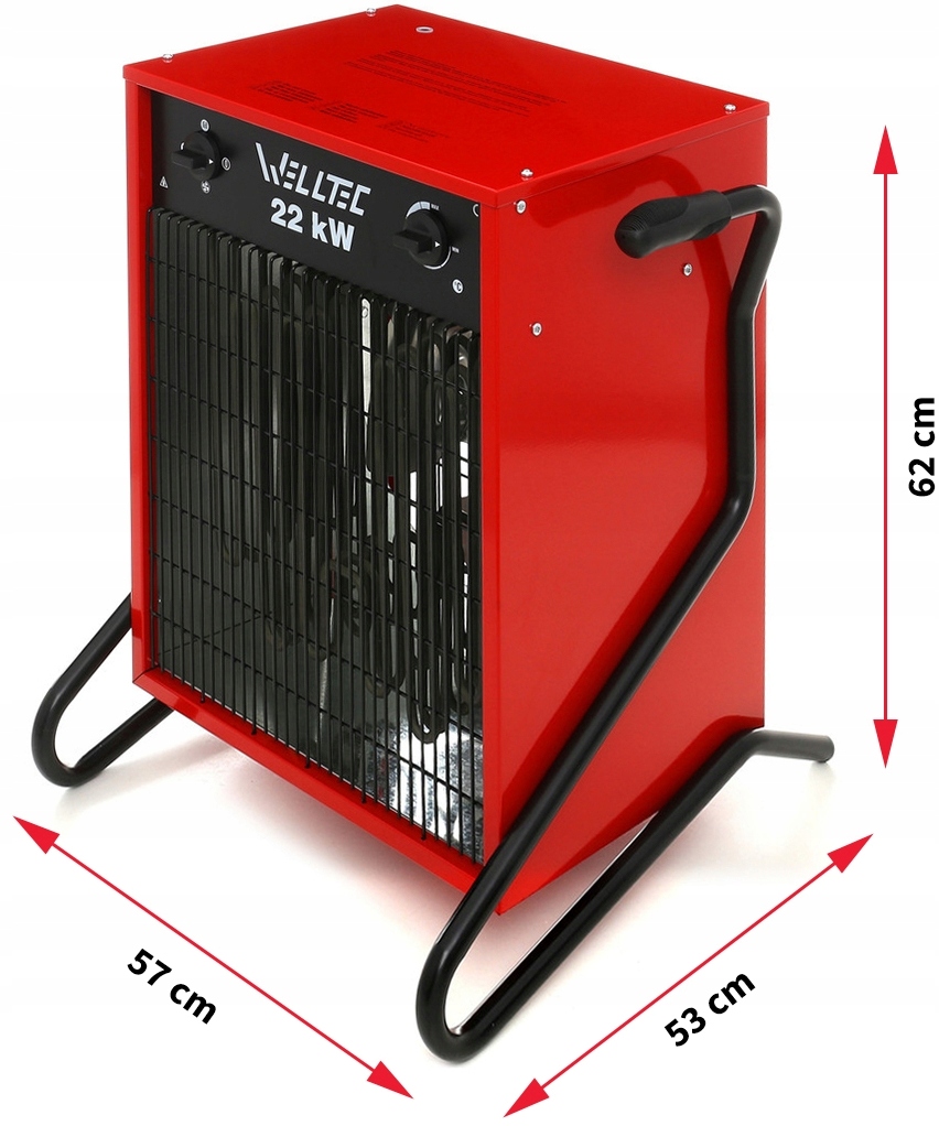 Электрический обогреватель WELLTEC EHI220 мощностью 22 кВт предназначен для обогрева больших помещений - таких как палатки, холлы, мастерские, строительные площадки, фермы комнаты. Также его можно использовать для обогрева полуоткрытых и открытых помещений. EHI220не выделяет неприятных запахов и выхлопных газов при работе, поэтому его можно использовать в закрытых помещениях с плохой вентиляцией, где находятся люди и животные. Обогреватель не выделяет водяной пар во время работы — его можно использовать для сушки влажных помещений. Вентилятор, установленный в EHI220, генерирует воздушный поток производительностью 2400 м3/ч, равномерно распределяя тепло, вырабатываемое шестью надежными электронагревателями мощностью 3,66 кВт каждый.