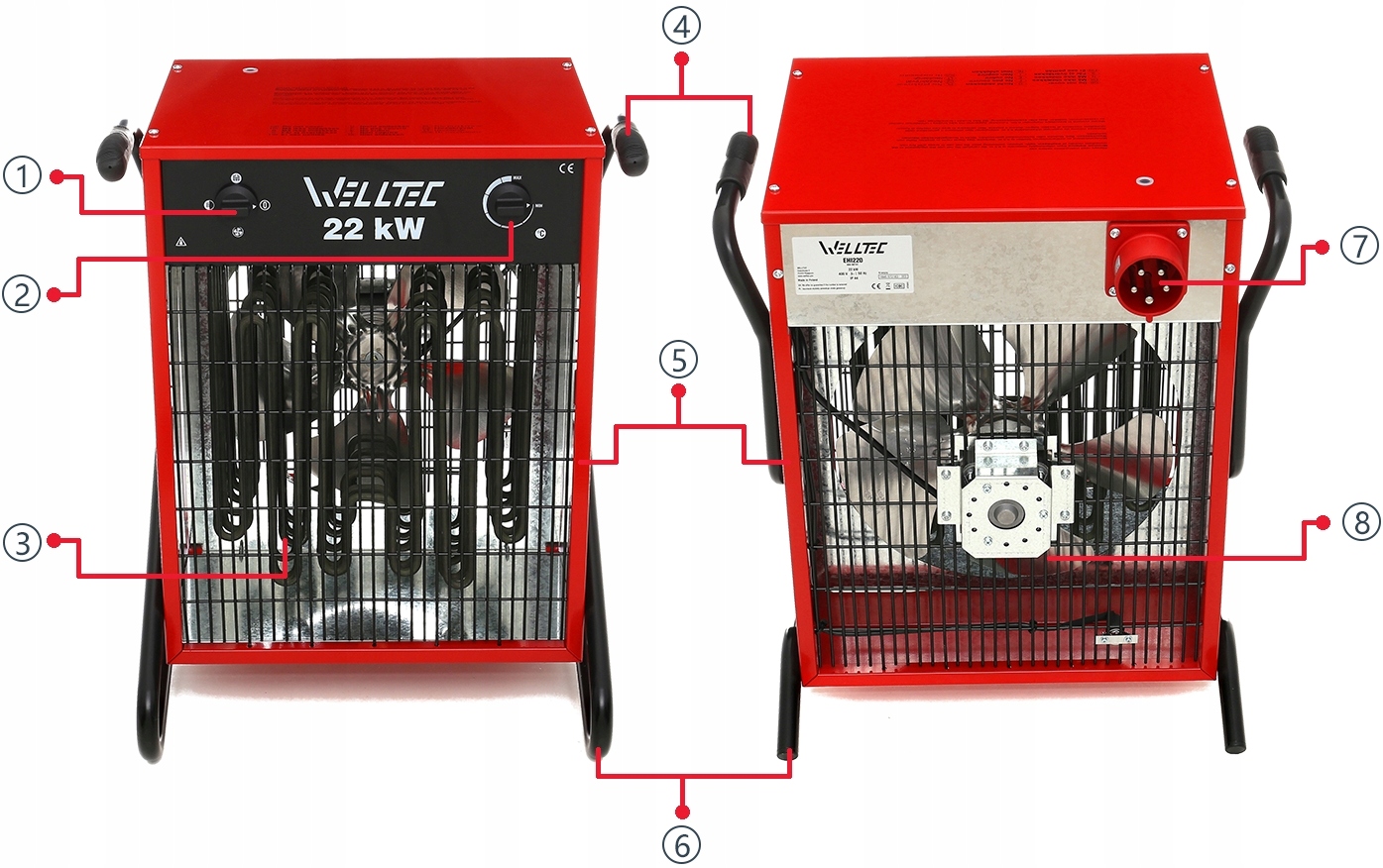 ПОЛЬСЬКИЙ ЕЛЕКТРИЧНИЙ ОБІГРІВАЛЬНИК WELLTEC EHI220 - 22кВт 2400 м³/год + 5м КАБЕЛЬ