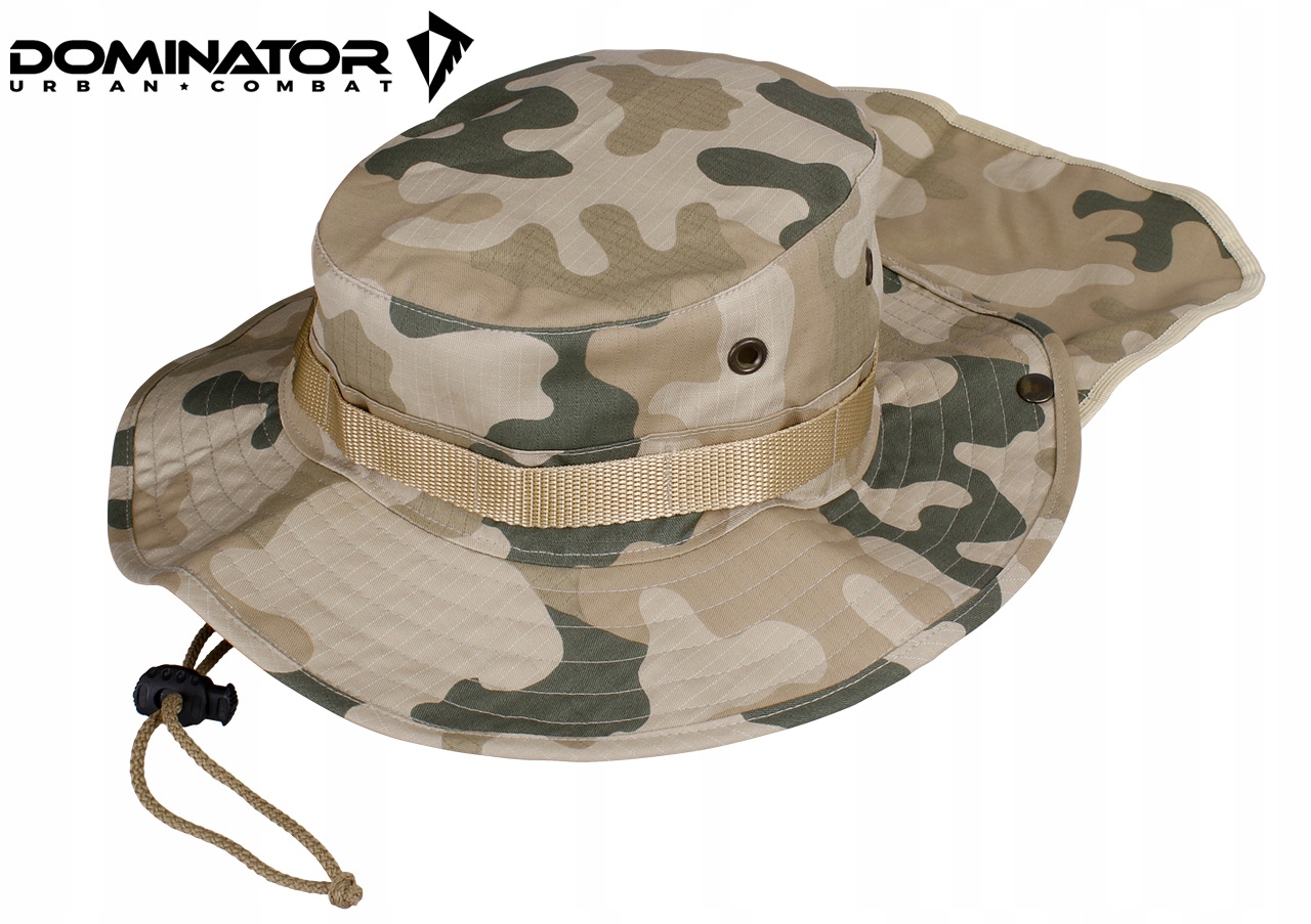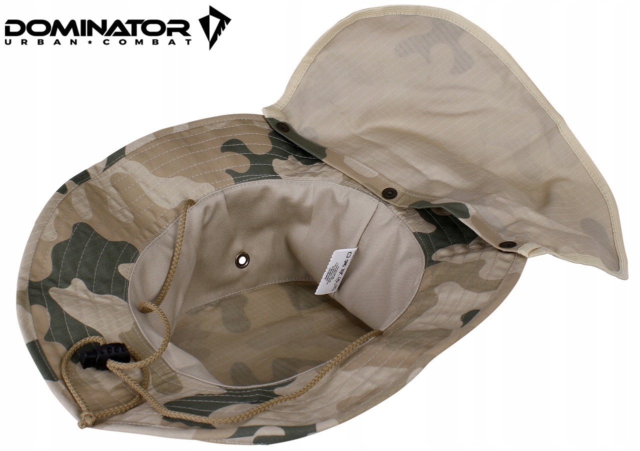 Функциональная военная шапка с крышкой на шею от польской компании Dominator прекрасно защищает голову и шею от солнечных лучей. Идеально подходит для полигона, экспедиции по спасению, поездки в горы и для повседневного использования.
