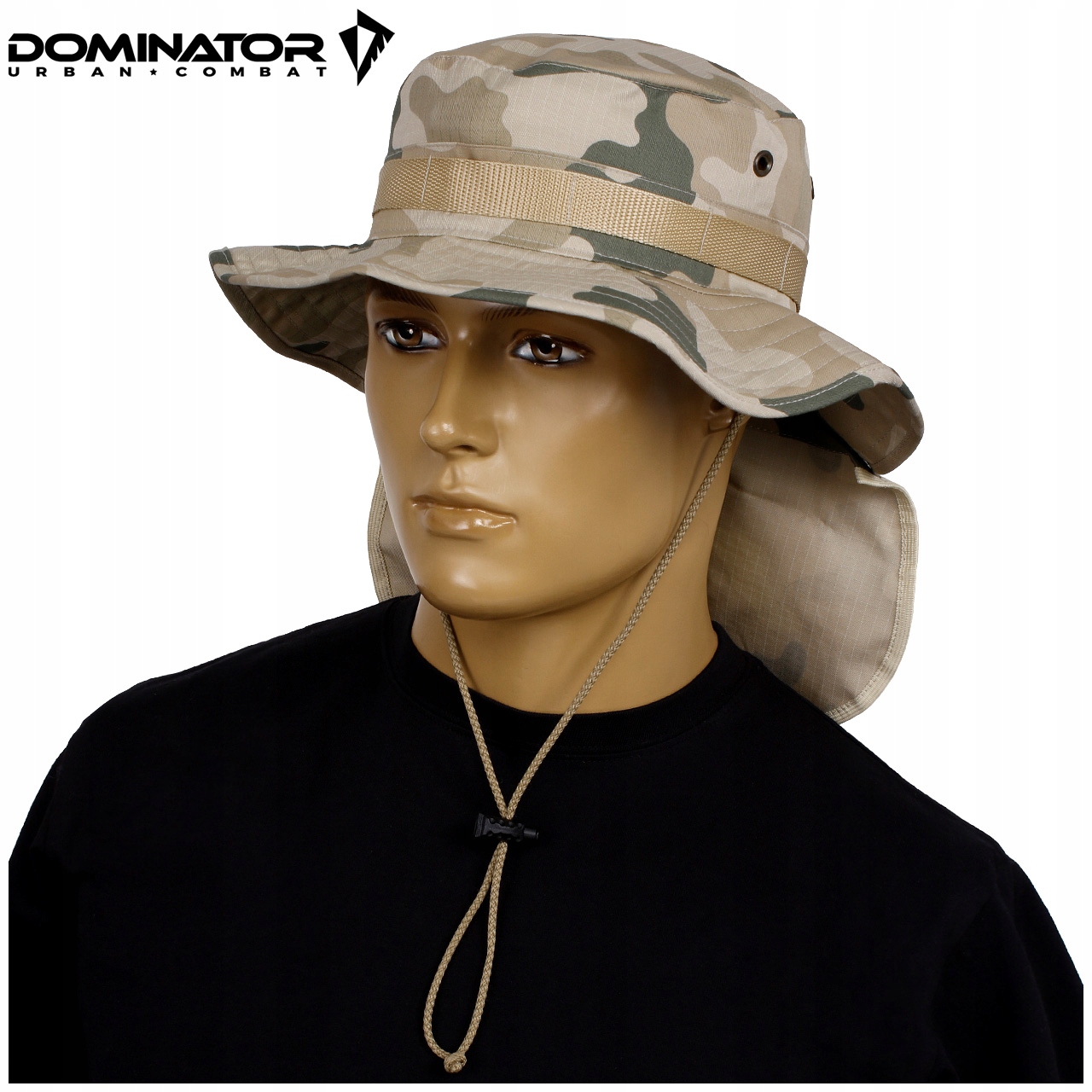 Функциональная военная шапка с крышкой на шею от польской компании Dominator прекрасно защищает голову и шею от солнечных лучей. Идеально подходит для полигона, экспедиции по спасению, поездки в горы и для повседневного использования.