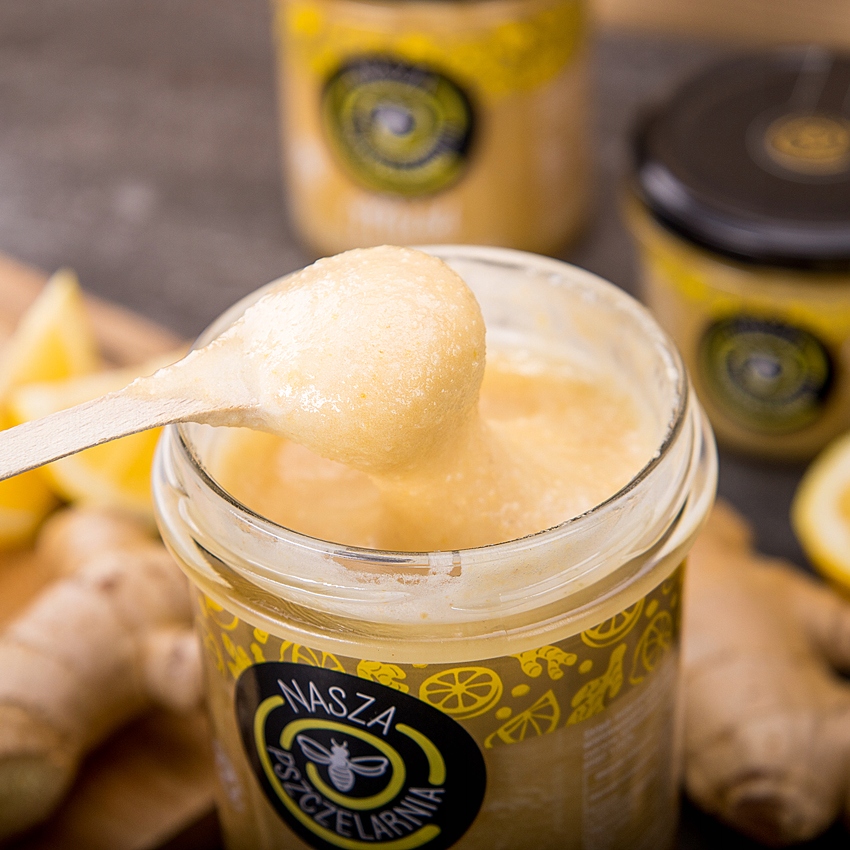 ПОЛЬСКИЙ НАТУРАЛЬНЫЙ ПЧЕЛИНЫЙ МЕД С ИМБИРЕМ И ЛИМОНОМ 190г НЕКТАР ВИТАМИНЫ