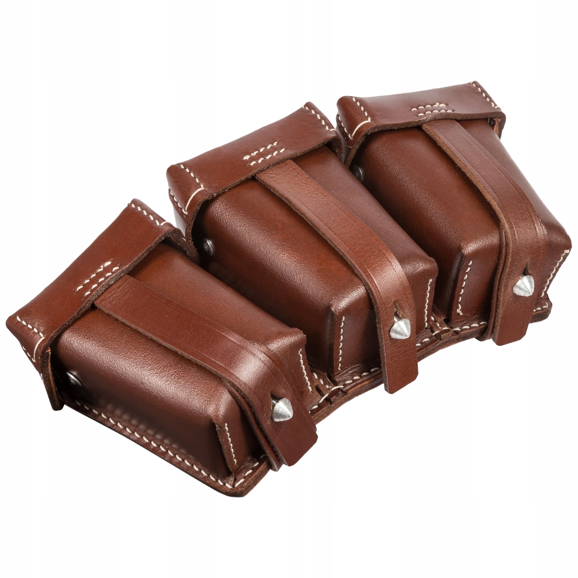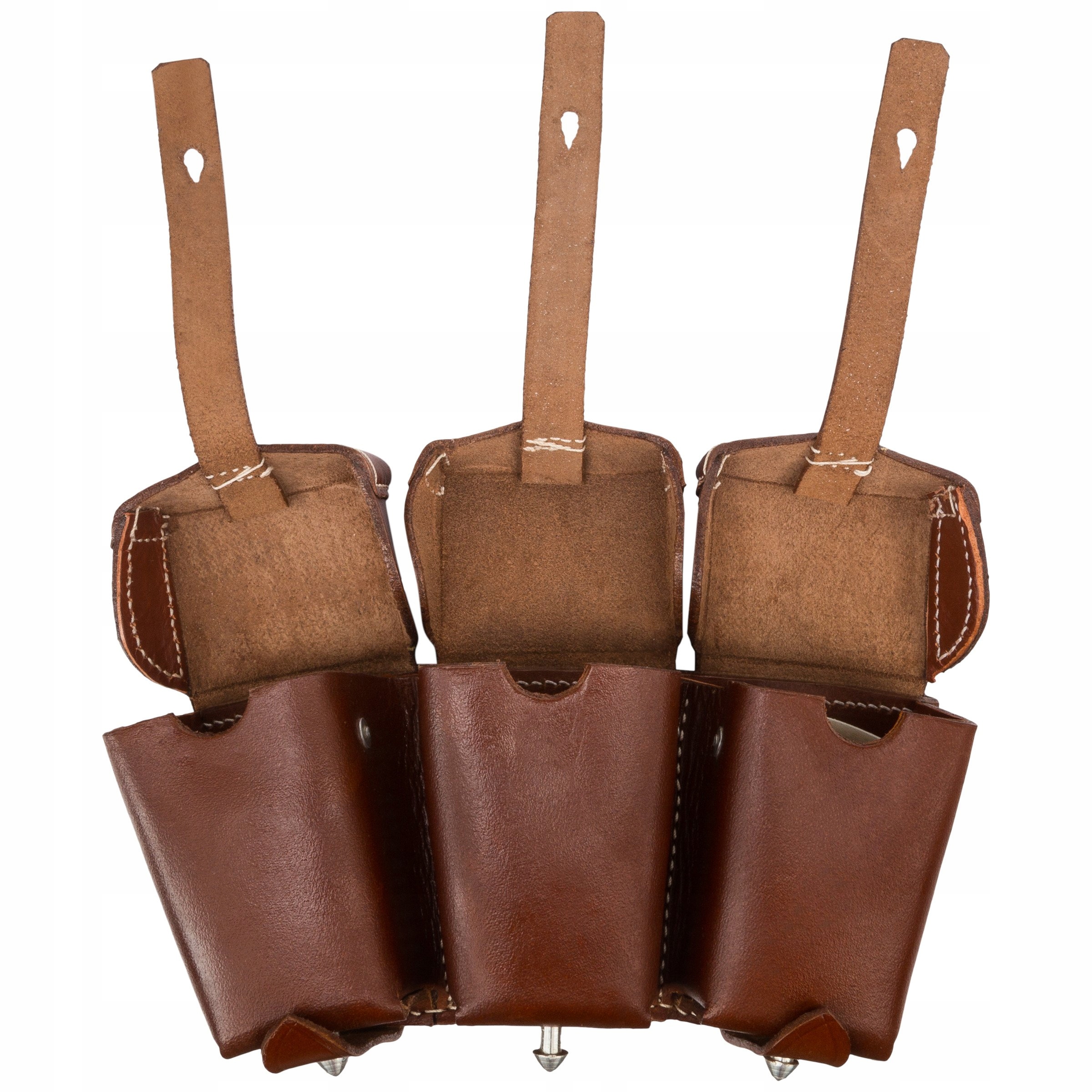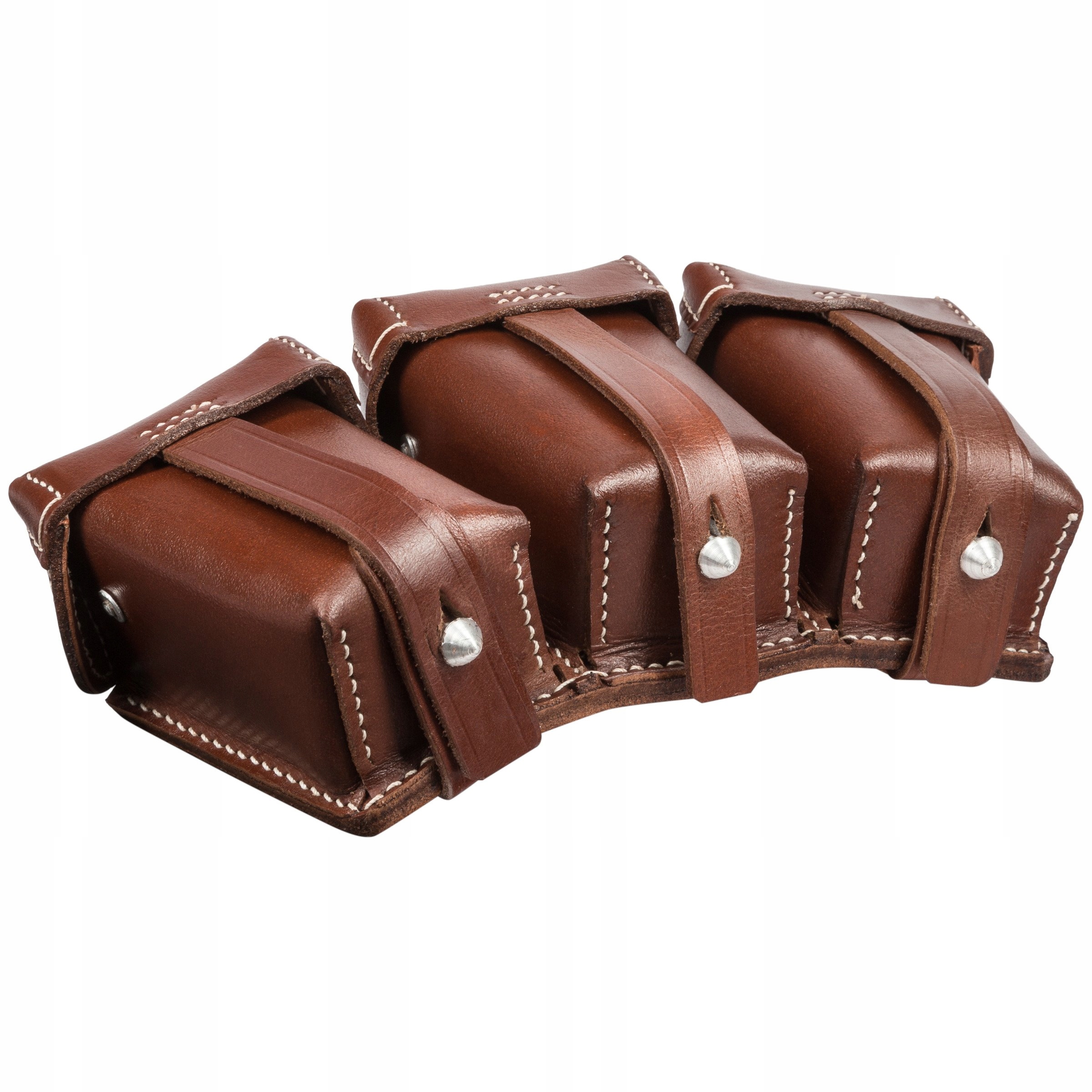Реплика польского подсумка wz. 1922 года, обычно называемый трехзарядным Маузером. Сумочки изготовлены из кожи, как и оригинал. Детали выполнены в соответствии с оригиналом, отсеки, клепка и т.д. В каждом патроннике по три патрона, импортное изделие.