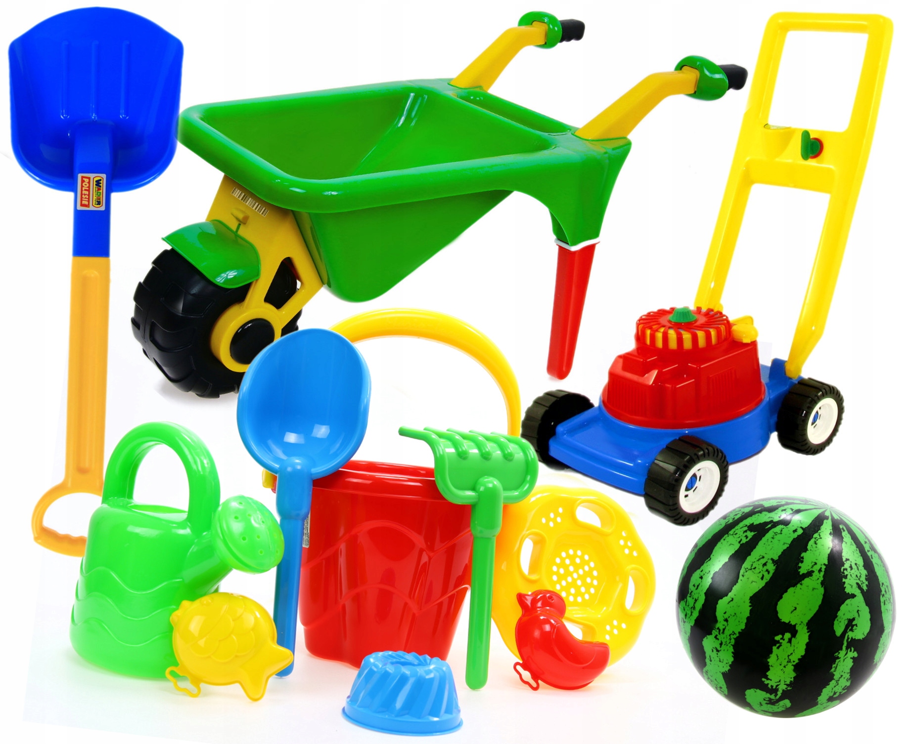 НАБОР ПОЛЬСКОГО ПЕСКА 12 предметов Косилка Тачка Лопатка, Формы Лейка Шарик