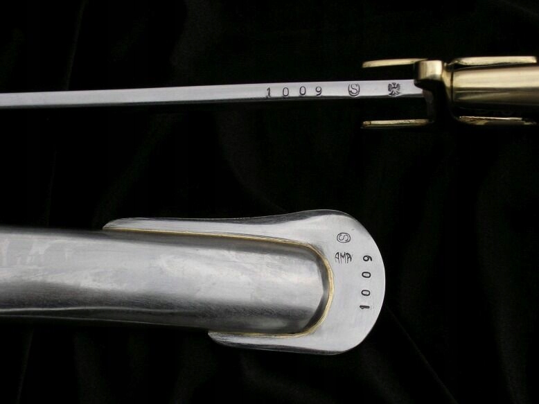 Сабля имеет подлинные украшения, такие как подписи производителя, эмблема штата, техническое признание и серийные номера в соответствии с историческим описанием.