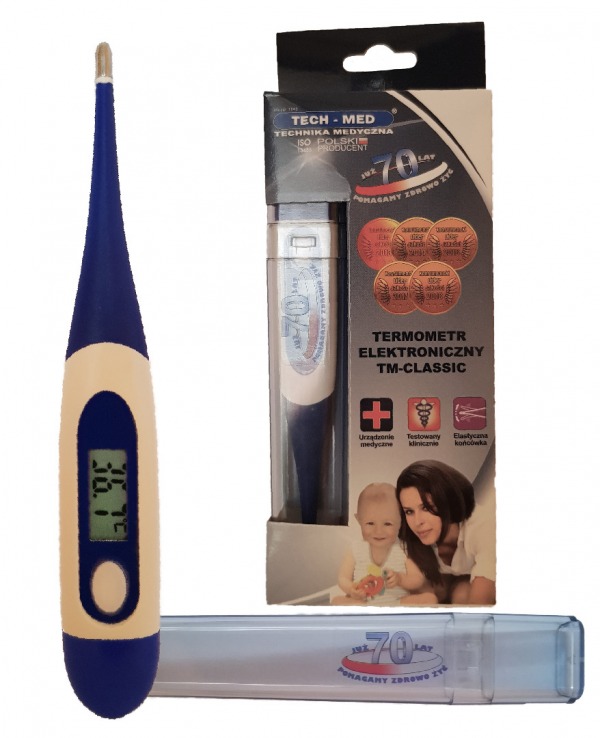 Медицинский термометр Tech-Med TM-CLASSIC поможет вам бороться с простудой. Благодаря ему вы быстро узнаете о повышенной температуре тела. Эта модель запоминает последнее измерение, поэтому мы можем легко контролировать температуру. Устройство оснащено жидкокристаллическим дисплеем и гибким наконечником. Автоматическое отключение происходит примерно через 10 минут. Термометр не содержит ртути и стекла, что делает его безопасным как для пользователя, так и для окружающей среды.