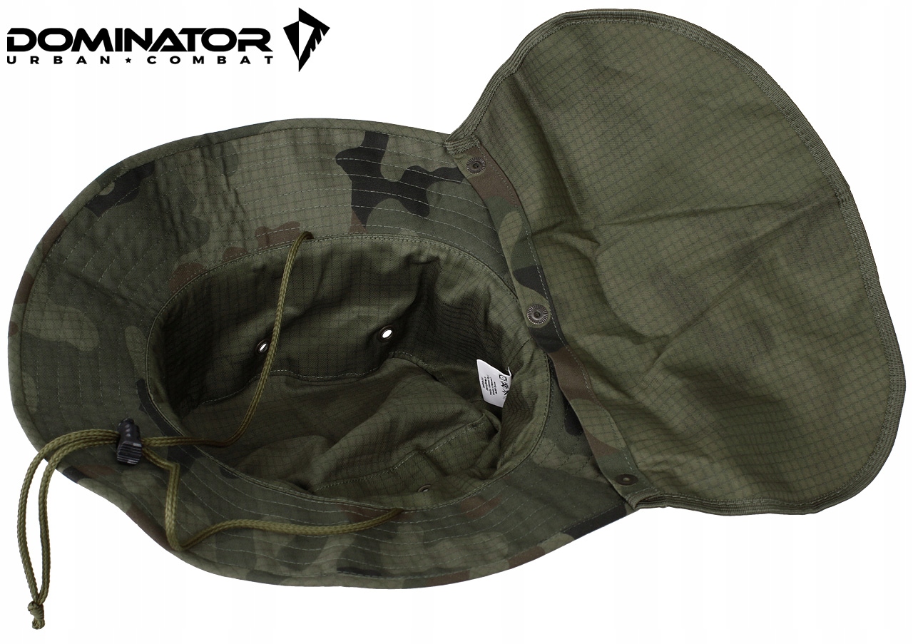 Функциональная военная шапка с крышкой на шею от польской компании Dominator прекрасно защищает голову и шею от солнечных лучей. Идеально подходит для полигона, экспедиции по спасению, поездки в горы и для повседневного использования.
