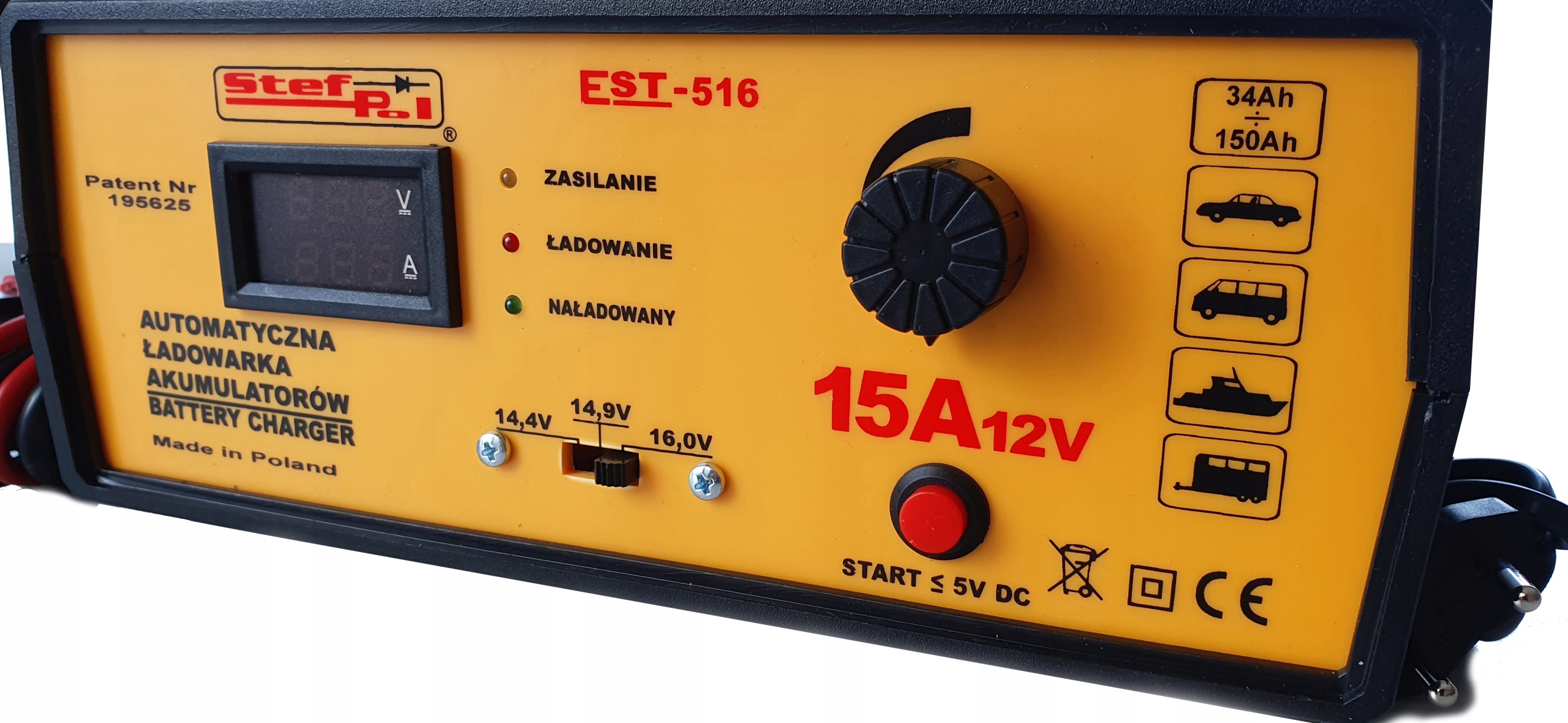 ✅ Автоматическое зарядное устройство STEF-POL EST-516 12В 15А с дисплеем В,А. + зарядка аккумуляторов напряжением ниже 5В.