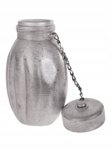 Модель польской алюминиевой фляги. 37. Послевоенного производства, фляги готовые к употреблению, закрываются резьбовой крышкой на цепочке.