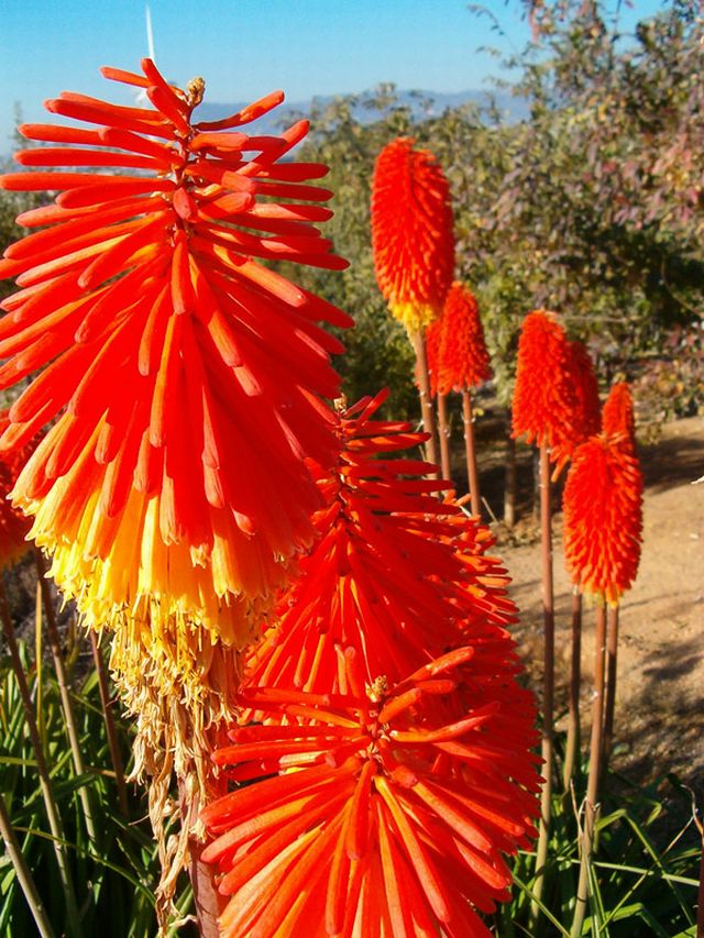 Тритома рацема – корневищное растение, которое украсит цветники благодаря своему оригинальному экзотическому силуэту. У него хрупкие травянистые листья, собранные в комки, вырастающие до нескольких десятков сантиметров. Из центра листовой розетки растут жесткие побеги-соцветия высотой 60-100 см. У него очень интересные соцветия, закрепленные на высоких стеблях. Каждое соцветие состоит из десятков трубчатых цветков окраски от желтого до оранжевого. Цветет обычно с июня по сентябрь с небольшими перерывами. Обрезка отцветших соцветий ускоряет образование новых.