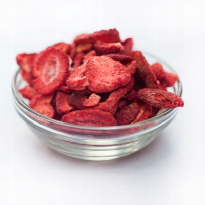 Клубника сублимированной сушки высушивается с использованием специальной заморозки -метод сушки, обычно называемый «сушка замораживанием», благодаря которому плоды сохраняют большую часть своей пищевой ценности, форму, цвет, а вкус и запах становятся более выраженными.