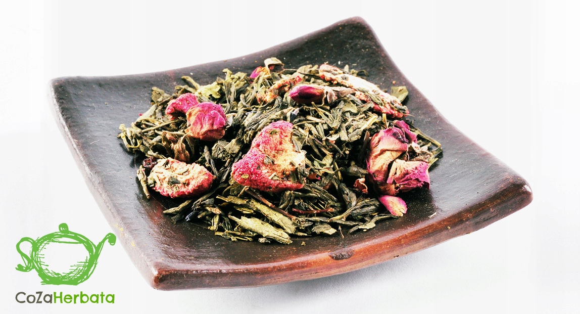 Китайская сенча, сублимированная клубника (содержание клубники 6%), изюм, бутоны розы, лаванда, ароматизатор