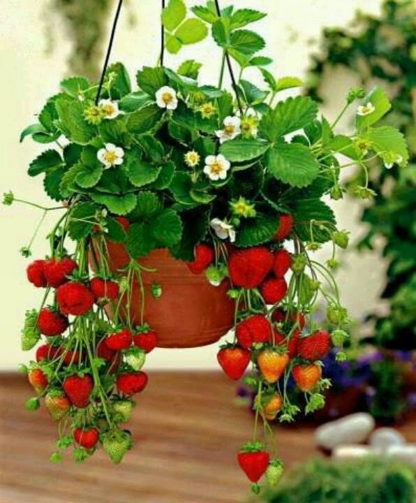 Клубника в горшке наземная, стебель/висячая.