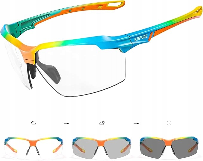 Фотохромные велосипедные очки KAPVOE — это высококачественные спортивные очки для мужчин и женщин, идеально подходящие для езды на велосипеде, бега, рыбалки, вождения и других видов активного отдыха. Оснащенные современными фотохромными линзами, которые автоматически адаптируются к изменяющимся условиям освещения (от прозрачного до серого), они обеспечивают четкое зрение и защиту глаз в любых условиях. Изготовленные из сверхлегкой оправы TR90 (23 г) и линз из поликарбоната с покрытием UV400, они обеспечивают превосходную защиту от ультрафиолетовых лучей, устойчивость к царапинам и комфорт при ношении.