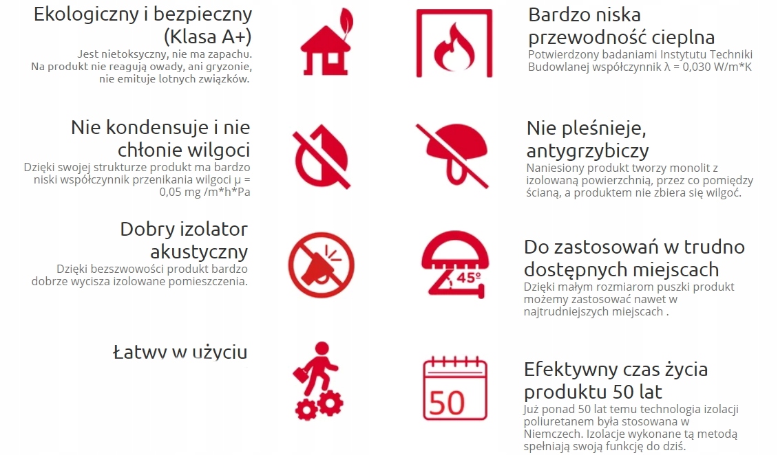 Рабочие поверхности следует очистить от пыли, грязи, жирных пятен и льда. Перед нанесением продукта увлажните пористые, впитывающие строительные материалы, такие как кирпич, бетонные блоки, штукатурка, бетон и дерево, водяным туманом. Не мочите гладкие и невпитывающие поверхности, такие как металл, стекло, пластик. Оцинкованные листы перед окраской следует тщательно очистить от смазки. Сразу после нанесения средства рекомендуется смочить пену водяным туманом. Перед опрыскиванием контейнер должен иметь комнатную температуру от +18° до +25°С. ВНИМАНИЕ! Емкость не должна перегреваться. Температура напыляемой поверхности должна находиться в пределах от +5° до +30°С. Перед использованием энергично встряхните емкость! Чтобы содержимое контейнера начало вытекать, нажмите на спусковой крючок до упора. Толщина напыляемого слоя увеличивается на 20% в течение 20 минут, поэтому не распыляйте за раз более 4 см (4 см + 20 мин = 5 см). Если мы хотим получить большую толщину, наносим следующий слой через 20 минут после нанесения предыдущего слоя. Прежде чем это сделать, убедитесь, что на предыдущем слое нет капель воды. Количество слоев не ограничено. Распыление производится на расстоянии от 20 до 45 см от поверхности. Чем больше расстояние, тем шире полоса распыления. Во время опрыскивания емкость следует время от времени энергично встряхивать. Наносимый продукт следует защищать от УФ-лучей.