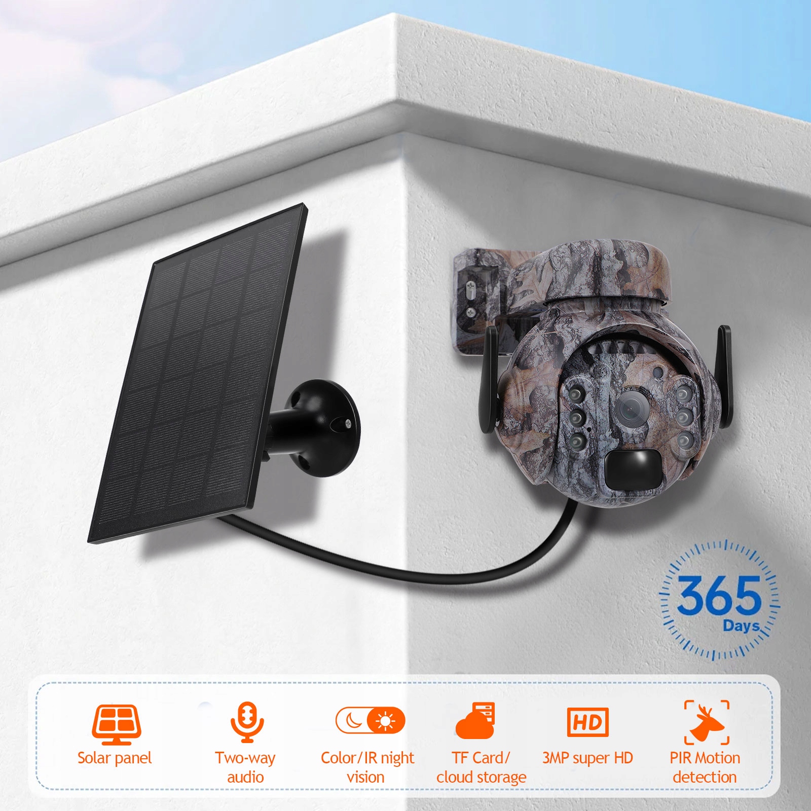 - ⭐【Высококачественная 3-мегапиксельная солнечная камера】Эта камера с разрешением 3 МП обеспечивает сверхчеткие и детальные изображения, питается от солнечной панели и заряжается от встроенного аккумулятора. Оснащенная четырьмя инфракрасными светодиодными лампами, камера может снимать яркие изображения с высоким разрешением даже в условиях низкой освещенности, обеспечивая надежное наблюдение днем и ночью.