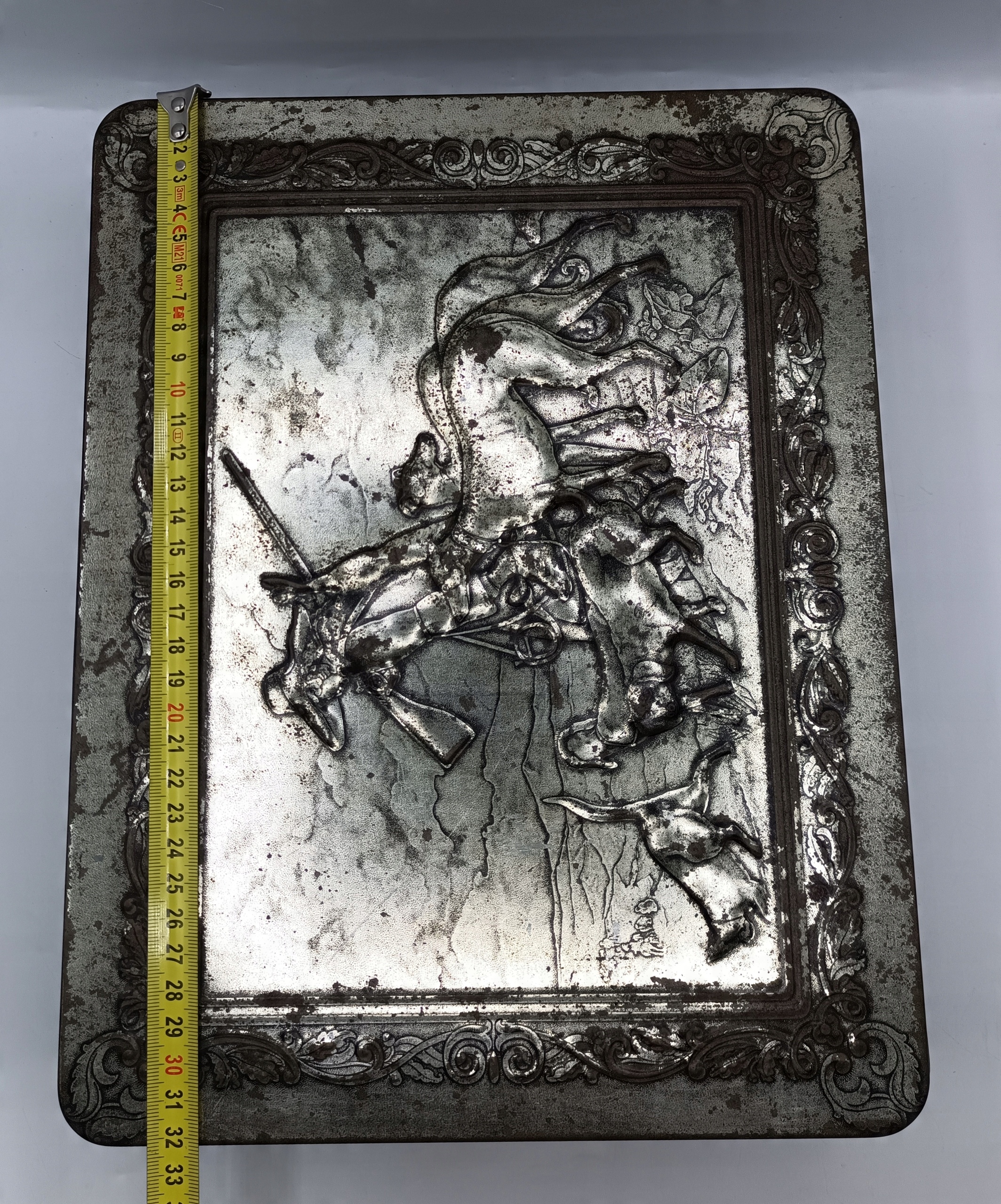 Охота с собаками - старая банка металлической шкатулки 32 см - сенсационная