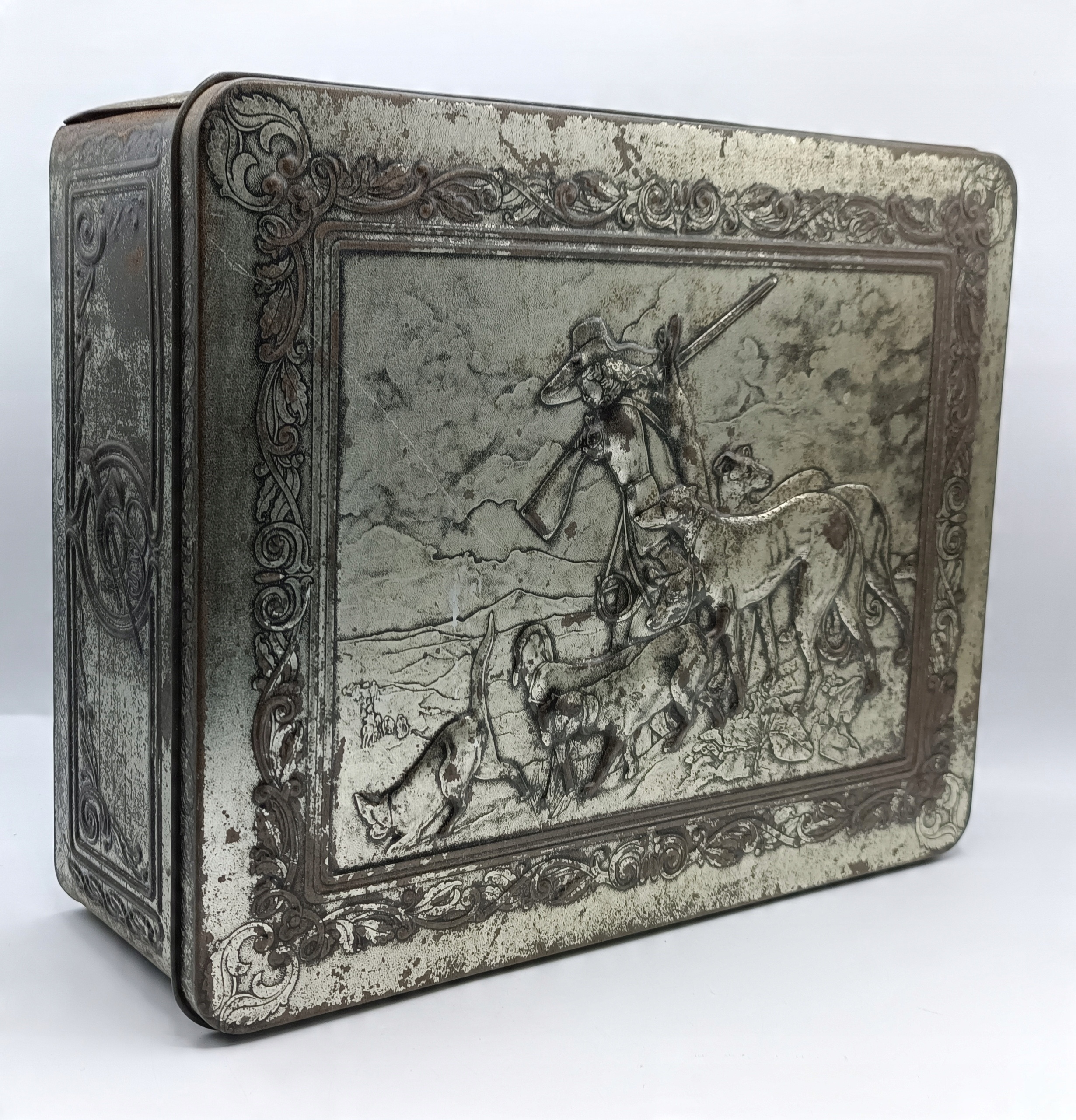 Охота с собаками - Старая банка из 32 -см металлической шкатулки - сенсационная,
