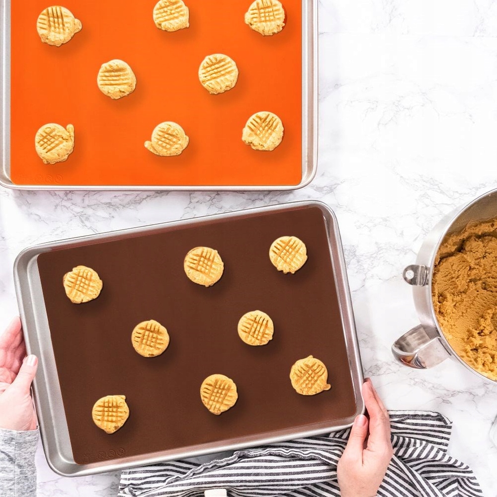 Современная силиконовая доска коричневого цвета, оснащенная антипригарным покрытием с одной стороны и антипригарным покрытием с другой, которое предотвращает скольжение коврика, благодаря чему он отлично удерживает столешницу. Коврик идеально подходит для замешивания тортов, печенья и пиццы. Полностью безопасен для здоровья и пищевым нейтральен. Не используйте для резки острые ножи, так как это может повредить доски. Оригинальный продукт чешского бренда Orion. Произведен в соответствии с европейскими стандартами.