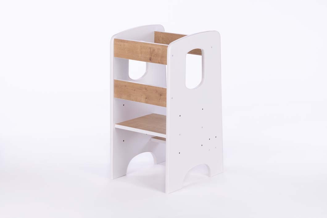 Благодаря возможности регулировки платформу можно отрегулировать под рост ребенка, чтобы ему было удобно пользоваться кухонной стойкой вместе с родителем.