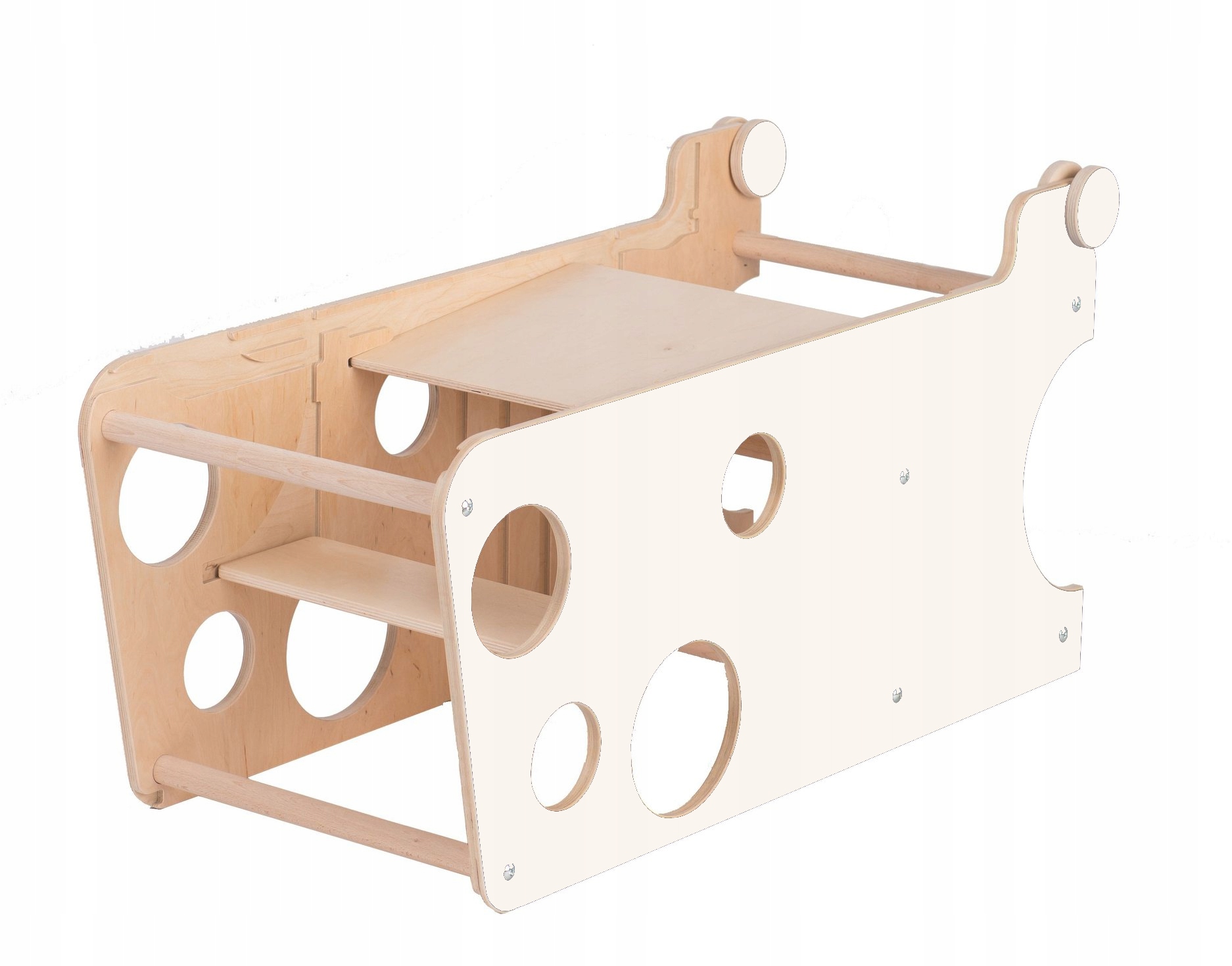 Идеально подходит для домов в стиле Монтессори или небольших квартир, где он может служить несколькими устройствами одновременно, экономя много места.