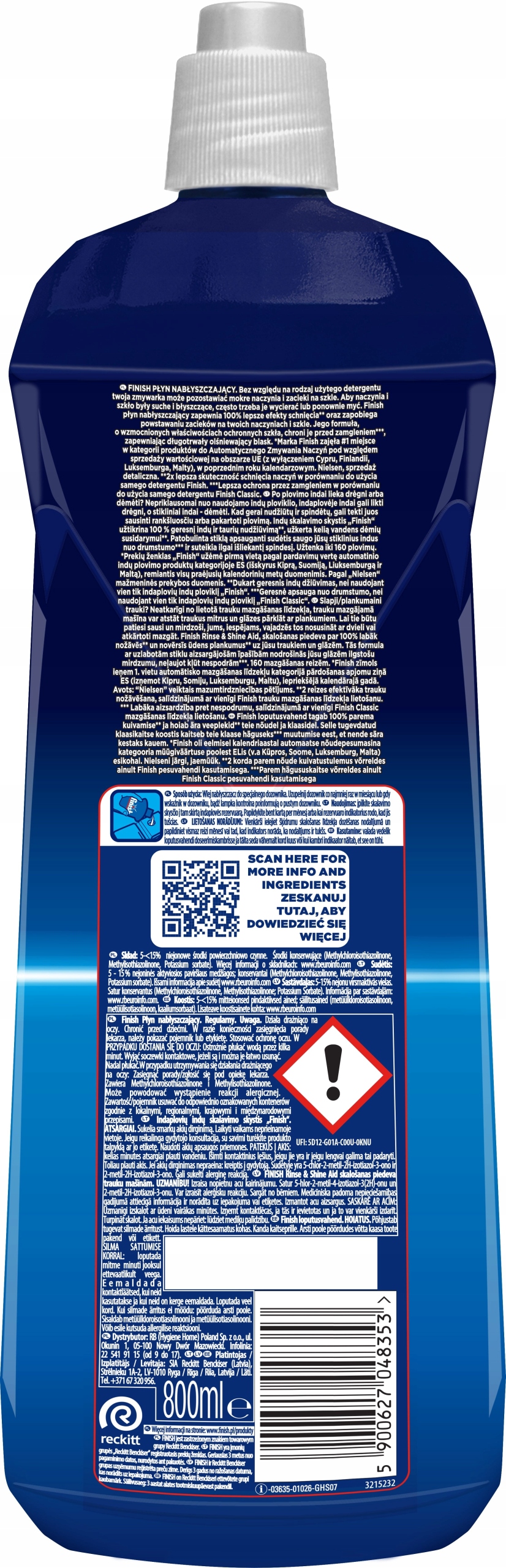 Посудомоечная машина ополаскивает жидкость 3х800 мл.