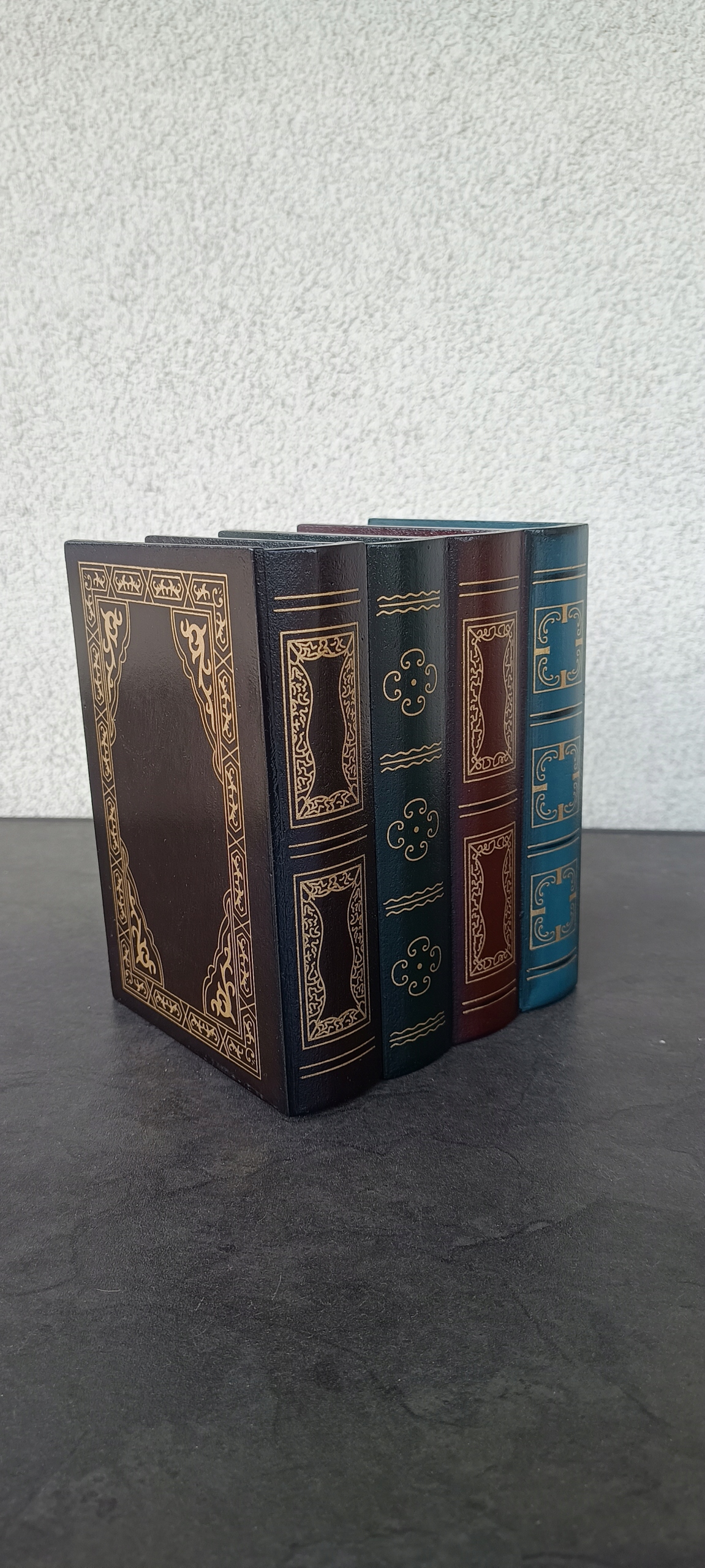✅ten Уникальный набор включает в себя четыре книги, которые вместе создают элегантную коробку для хранения. Внешние размеры: 16 х 10,5 х 13 см. Дизайн изготовлен из высококачественных пластин высокой плотности, украшенный классическим мотивом, который привлекает глаз и добавляет класс в интерьер.