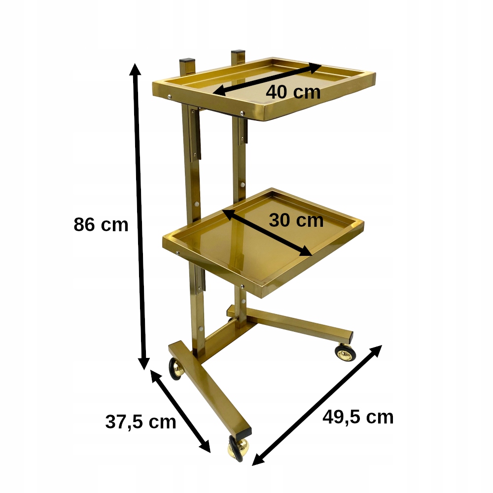 POMOCNIK WÓZEK FRYZJERSKI STOLIK KOSMETYCZNY REGAŁ 2 PÓŁKI PREMIUM II ZŁOTY