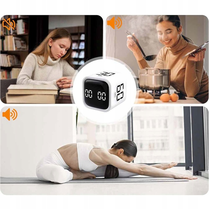 Идеальные цифровые кубические часы для работы, школы, спорта, офиса, встреч, детей, учебы, чтения, приготовления пищи и т. д. Цифровые вращающиеся кухонные часы с датчиком силы тяжести легко адаптируются к любому сценарию, что делает их лучшим инструментом тайм-менеджмента.
