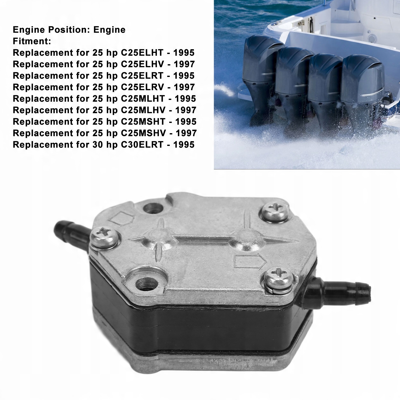 1995 года и так далее. 3. Особенности: Благодаря преимуществам передовых технологий и широкому диапазону мощности полезно улучшить ходовые качества корабля. 4. Высококачественные материалы: внешний масляный насос изготовлен из высококачественного металла и резины, что повышает надежность и срок службы. 5. Простая установка: установка чрезвычайно проста и не требует сложных инструментов, удобна в использовании.