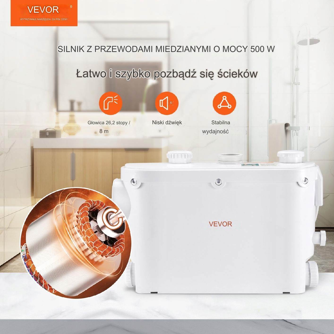 Pompa WC rozdrabniacz Przepompownia Ścieków 6600 l/h