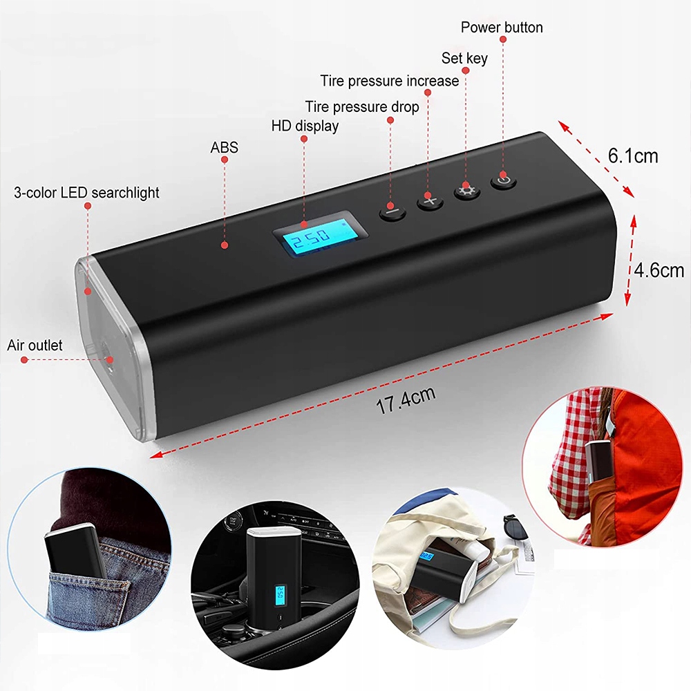 POMPKA MINI KOMPRESOR SAMOCHODOWY OPON ROWEROWY USB 2000 mAh