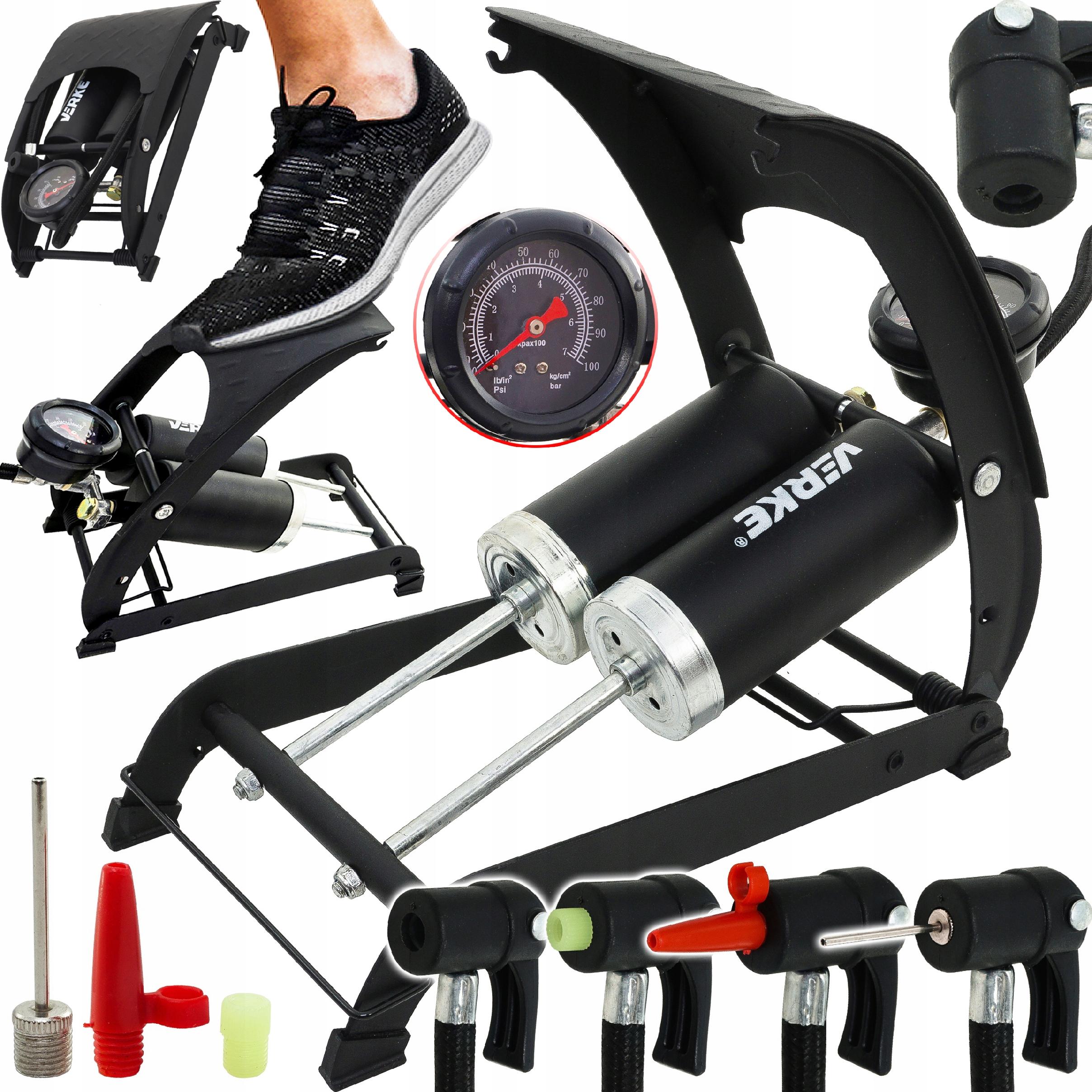 Двухпоршневой автомобильный ножной велосипедный насос с манометром Verke