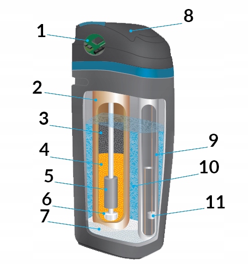 Смягчители автоматически регенерируют, что указывается при установке количества воды. Для удобства пользователей регенерация выполняется по умолчанию в 2 часа ночи, этот параметр может быть свободно изменен.