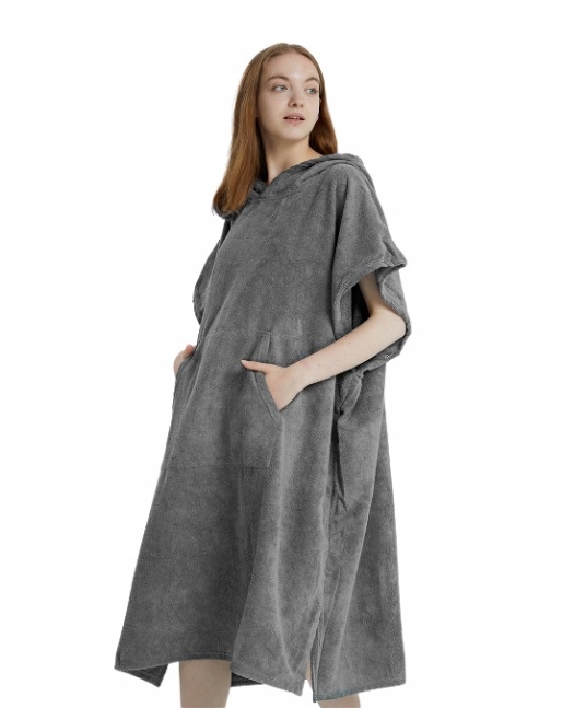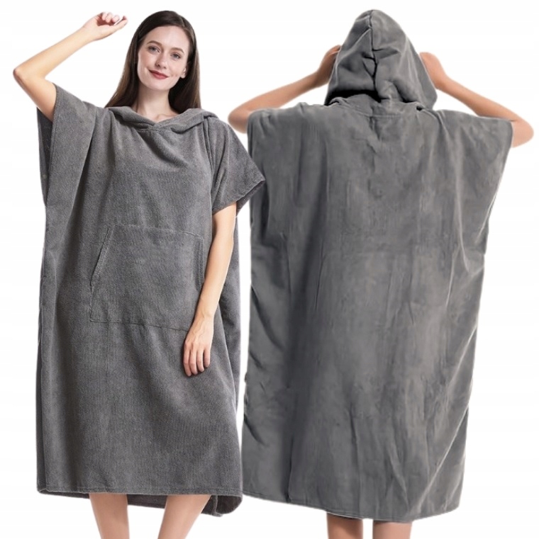 ПОНЧО ДЛЯ ПРОГУЛОК, ПОЛОТЕНЦЕ С КАПЮШОНОМ ДЛЯ МОРЖОВ, КУПАЛЬНИКИ ДЛЯ ПЛЯЖА, БАССЕЙНА, ХАЛАТ МУЖСКОЙ ЖЕНСКИЙ, СЕРЫЙ, БЕЗ РУКАВОВ