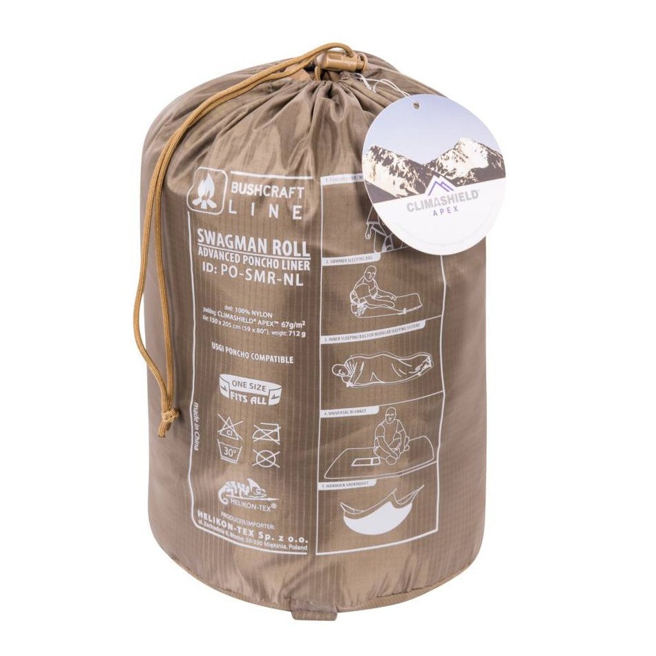 Helikon Swagmann Roll в камуфляже Pencott WildWood — многофункциональный инструмент, который будет работать там, где вам нужно тепло. Его можно прикрепить к пончо, это может быть самостоятельный спальный мешок, одеяло, одеяло для гамака, его можно использовать как второй утепляющий спальник или как вкладыш. Но самое главное – из него можно создать импровизированную куртку. Рулон Swagmann наполнен утеплителем Climashield Apex — одним из самых технологичных утеплительных материалов, который прекрасно согревает, дышит, чрезвычайно легок и быстро высыхает при намокании.