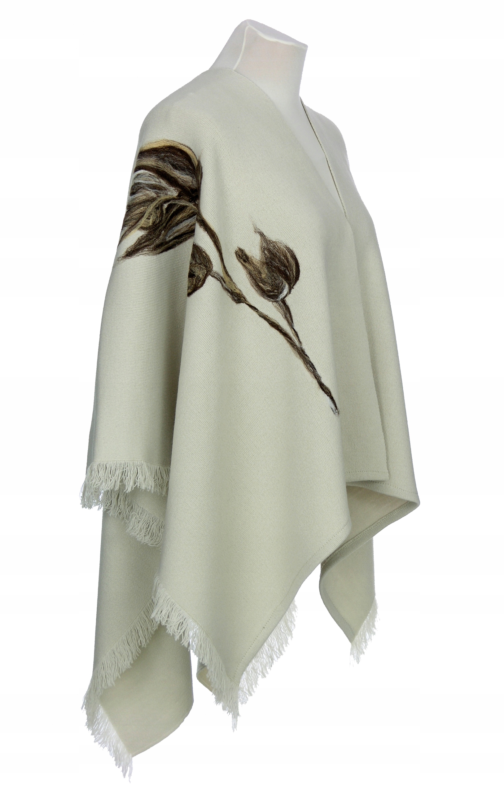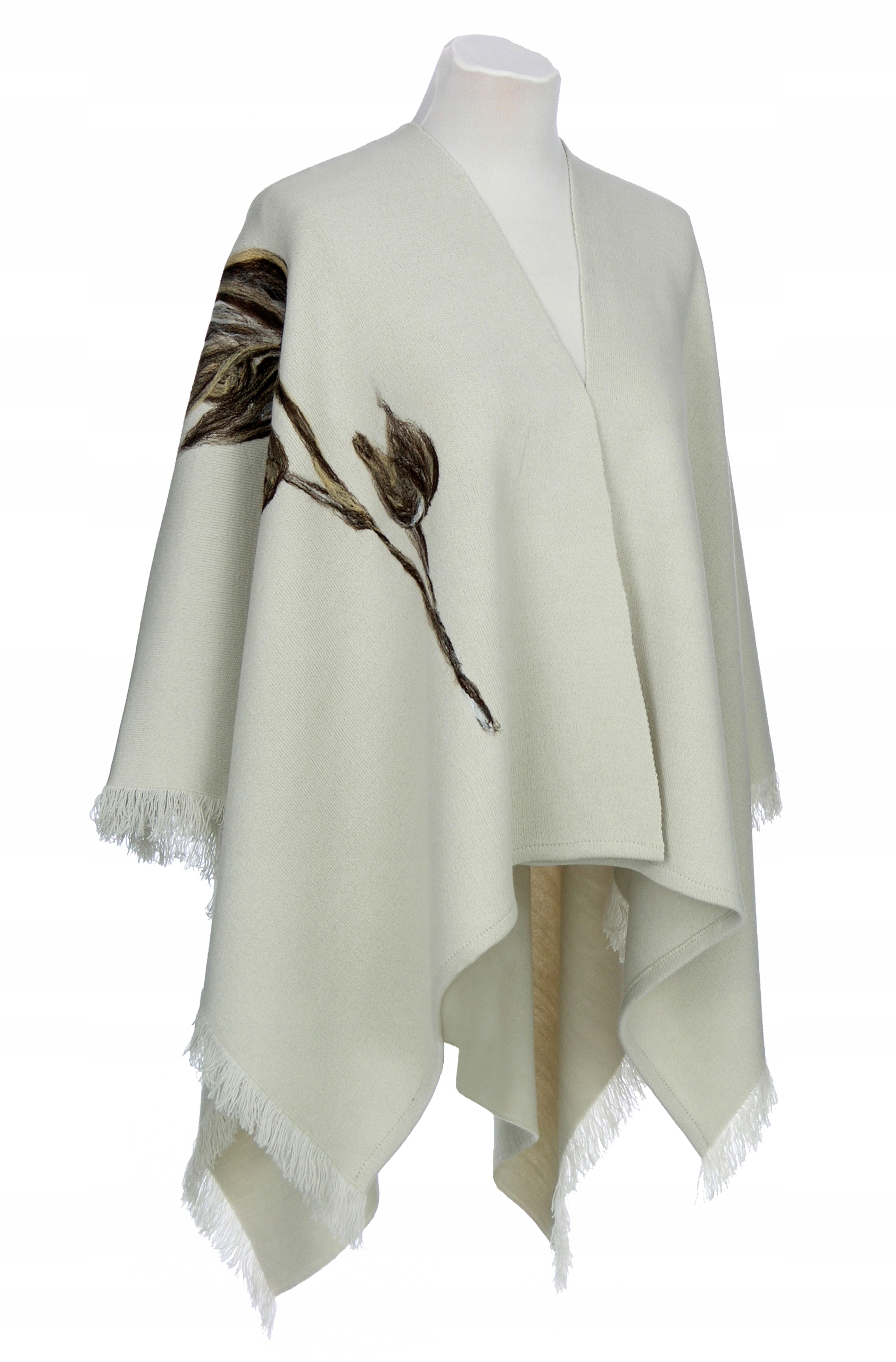 СВЕТЛО-БЕЖЕВОЕ ПОНЧО С ХУДОЖЕСТВЕННОЙ ВЫШИВКОЙ