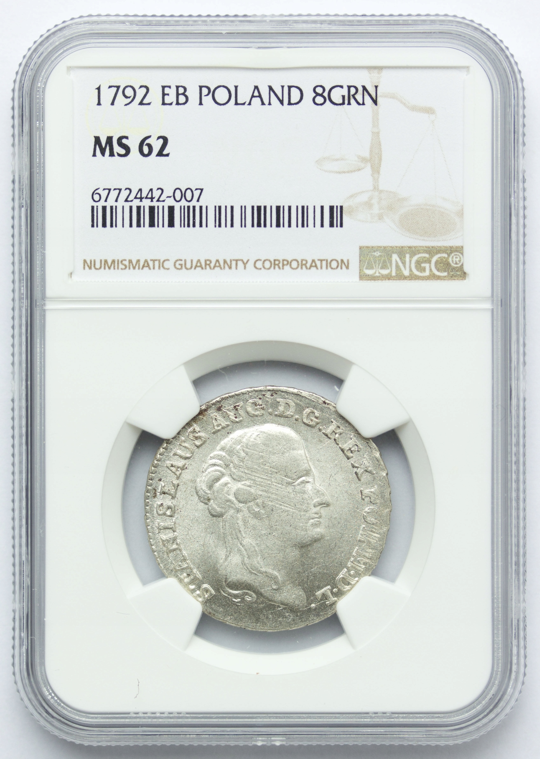 Пониатовски, Two-Zloty 1792 EB, Warsaw, NGC MS62, 2-я нота, замечательное