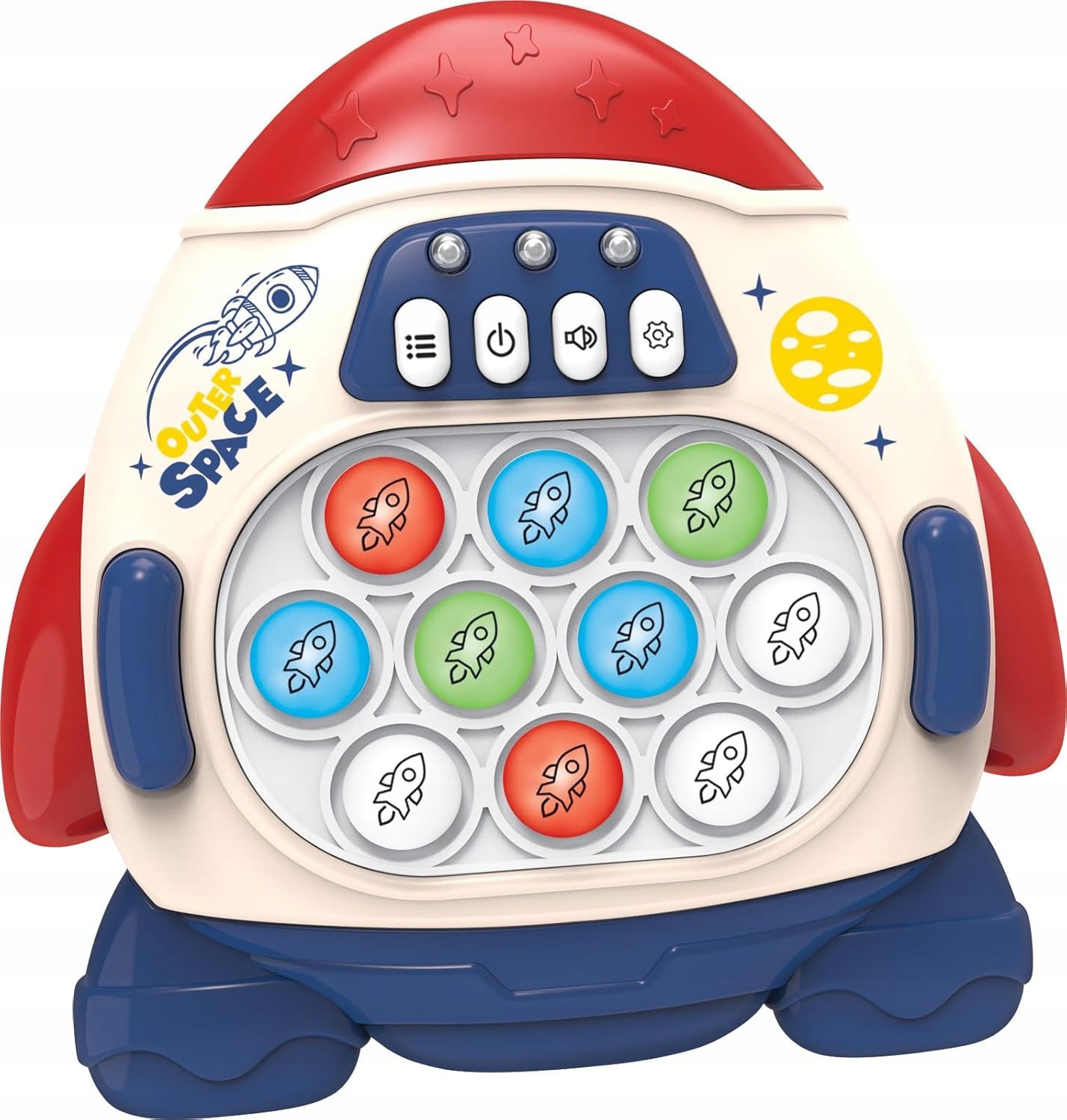 Игра POP IT Ракета — игрушка-антистресс, которая будет работать даже для самого младшего. Игра издает радостные звуки, которые побуждают детей играть и разнообразят игровой процесс. Игрушка небольшая, поэтому можно взять ее с собой. Pop It развлечение для детей и взрослых, которые охотно к нему стремятся. Развивает ум, мануальные навыки, зрительно-моторную координацию, тренирует восприимчивость и помогает в борьбе со стрессом.