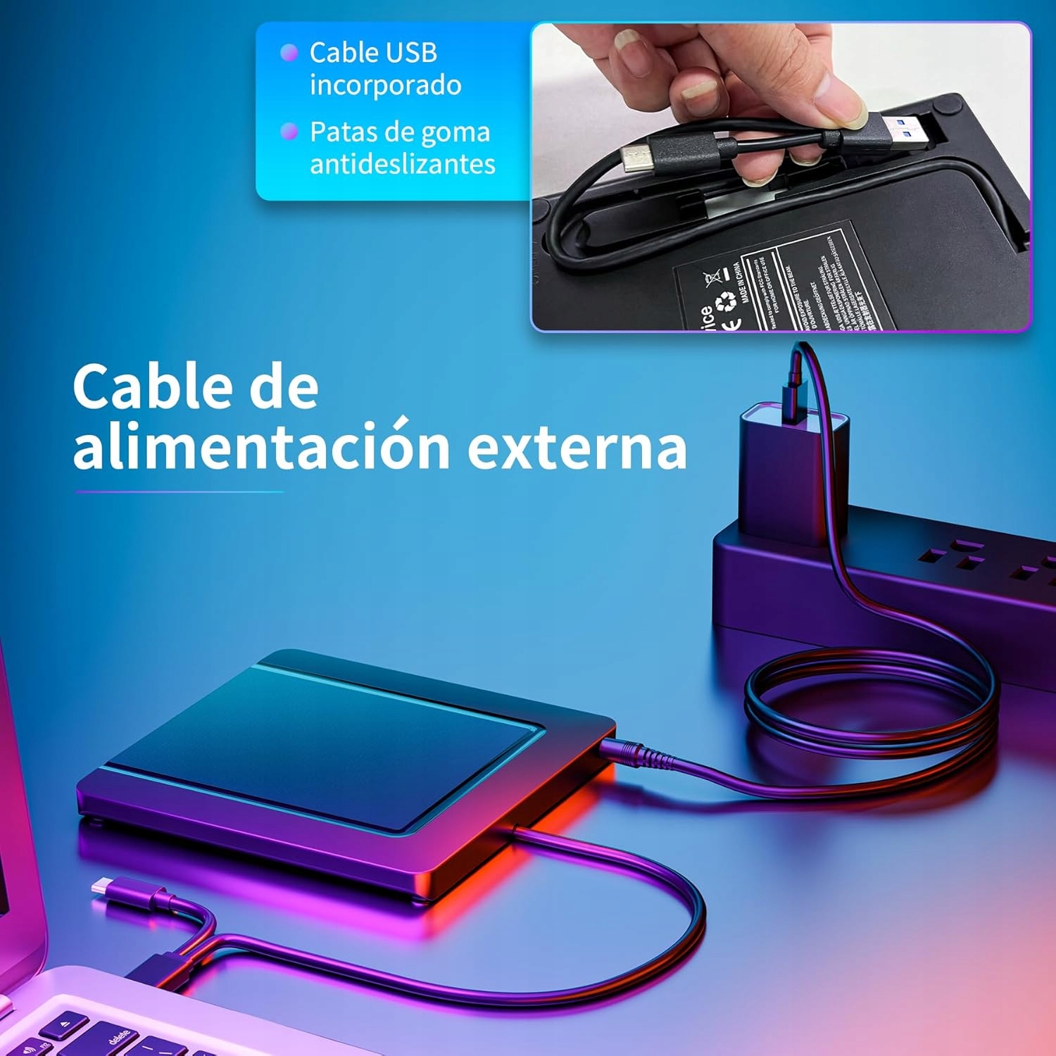 Сочетание стиля и мобильности. Встроенный кабель для передачи данных упрощает настройку и хранение. Противоскользящая резиновая основа обеспечивает устойчивость. Компактный размер делает его идеальным компаньоном для работы, путешествий или домашнего использования.