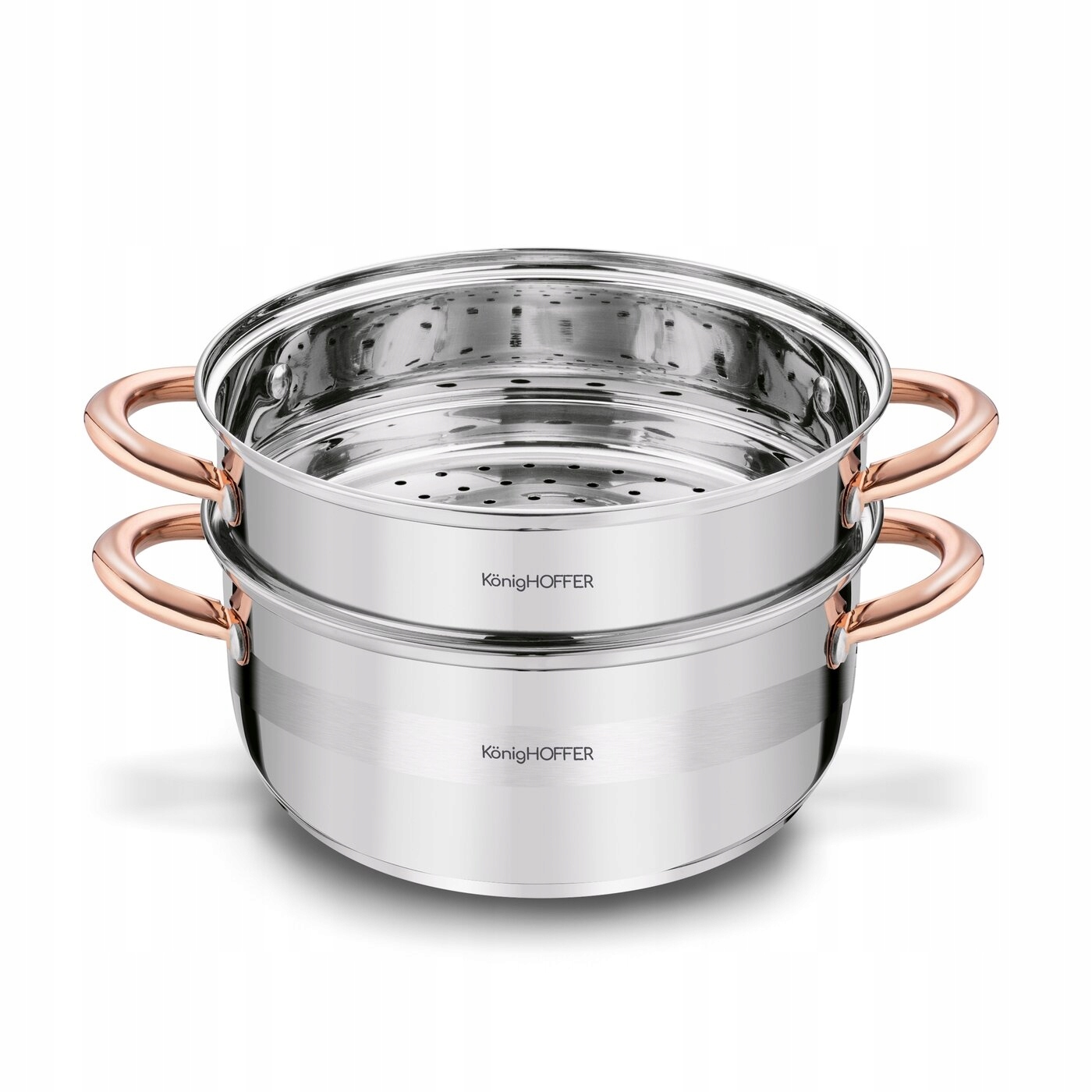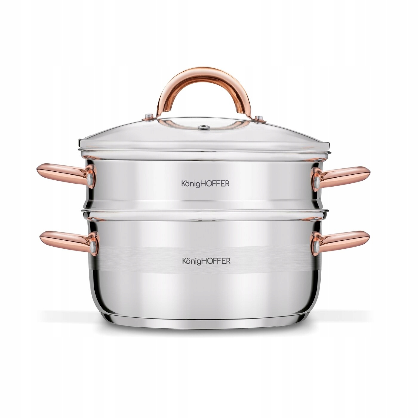 Парная кастрюля Faro Copper имеет емкость 2,9 литра. Продукт изготовлен из прочной из нержавеющей стали и оснащен захваченными ручками. Он состоит из 3 элементов и прост в уходе (только ручное мытье). В таком горшке со съемным ситечком вы будете готовить легко усваиваемое и здоровое питание для любимых. Вы будете использовать его для различных ингредиентов, включая мясо, пельмени и овощи. Более того, вы будете на пару посудов независимо от типа плиты. Это связано с тем, что горшок имеет дно, адаптированное для использования на индукционной, керамической, электрической и газовой пластине. Сплошное монтаж ручек даст вам безопасность во время переноса и определенного сцепления. Одним словом, вы получите твердый и энергичный стай, который после удаления вставки с ситом может быть классическим суповым горшком. Выделенная стеклянная крышка включена. Именно благодаря ей вы все еще можете остановить ценные микроэлементы, витамины и заботиться о сочности ингредиентов.