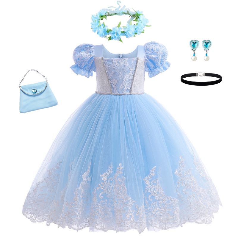 CINDERELLA БАЛЬНОЕ ПЛАТЬЕ CINDERELLA, ТЮЛЕВОЕ КРУЖЕВО 134 / 140 СМ (140) ВЕНОК, СЕРЬГИ, СУМОЧКА