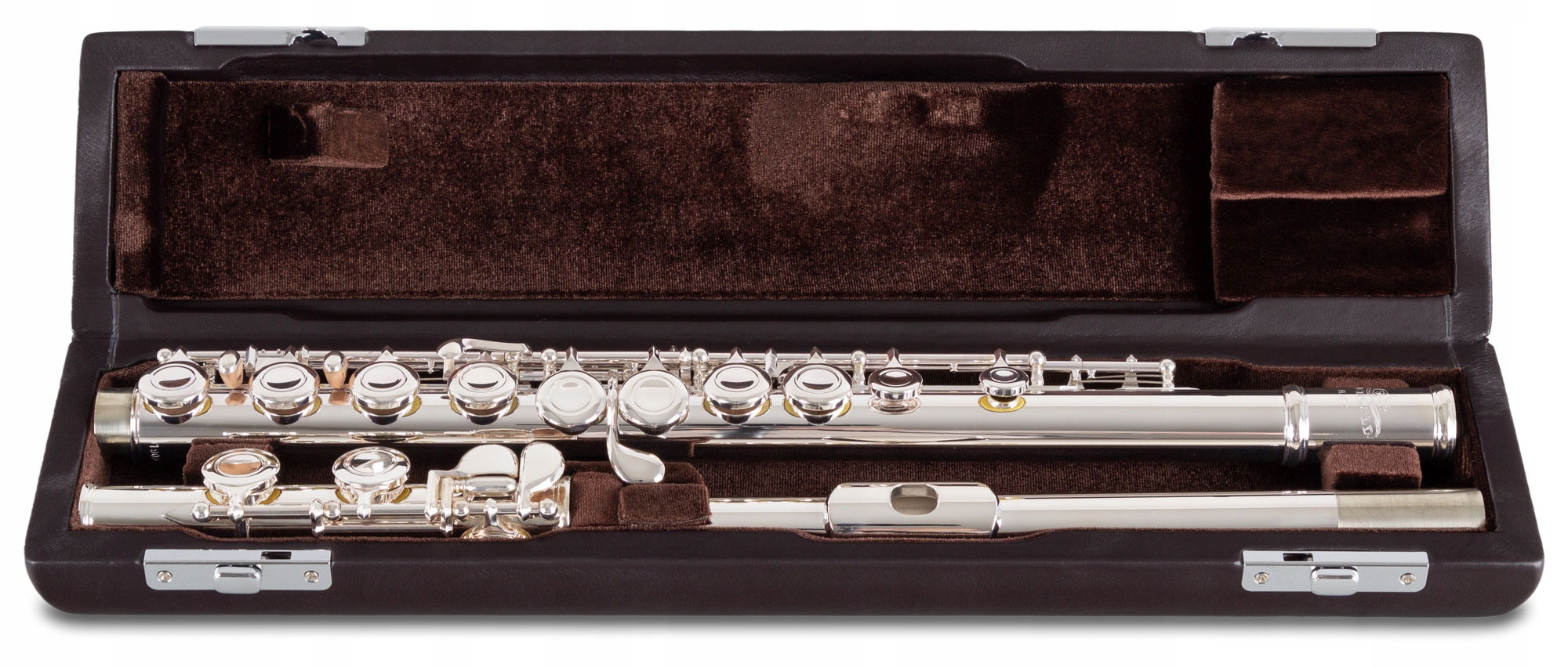 <ул>Поперечная флейта из трех частей с закрытыми клапанами, изготовлена из посеребренного никеля, поставляется с шомполом для чистки, футляром и сумкой для транспортировки.