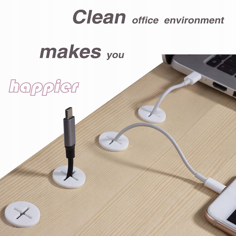 Белые втулки для прокладки кабелей, долговечны в использовании, организуют стол и сохраняют рабочую поверхность в чистоте