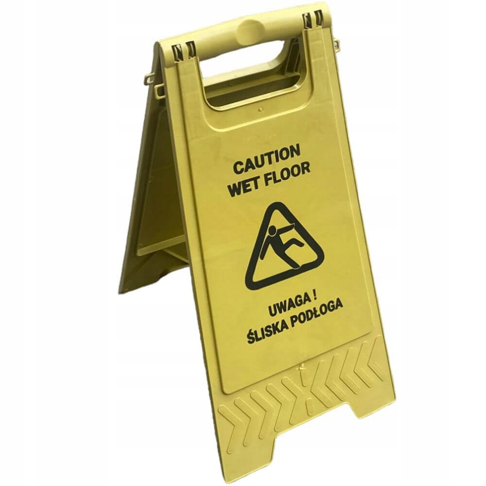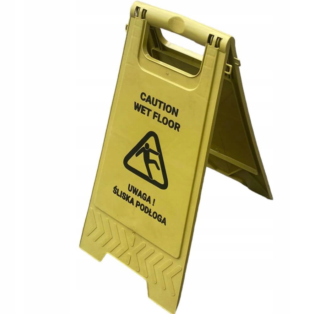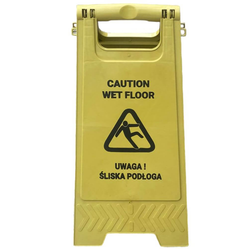 Желтый предупреждающий совет с надписью на польском и английском языке является элементом оборудования, необходимого в каждом крупном общественных коммунальных услугах. В качестве стандартного оборудования для любых услуг по очистке.