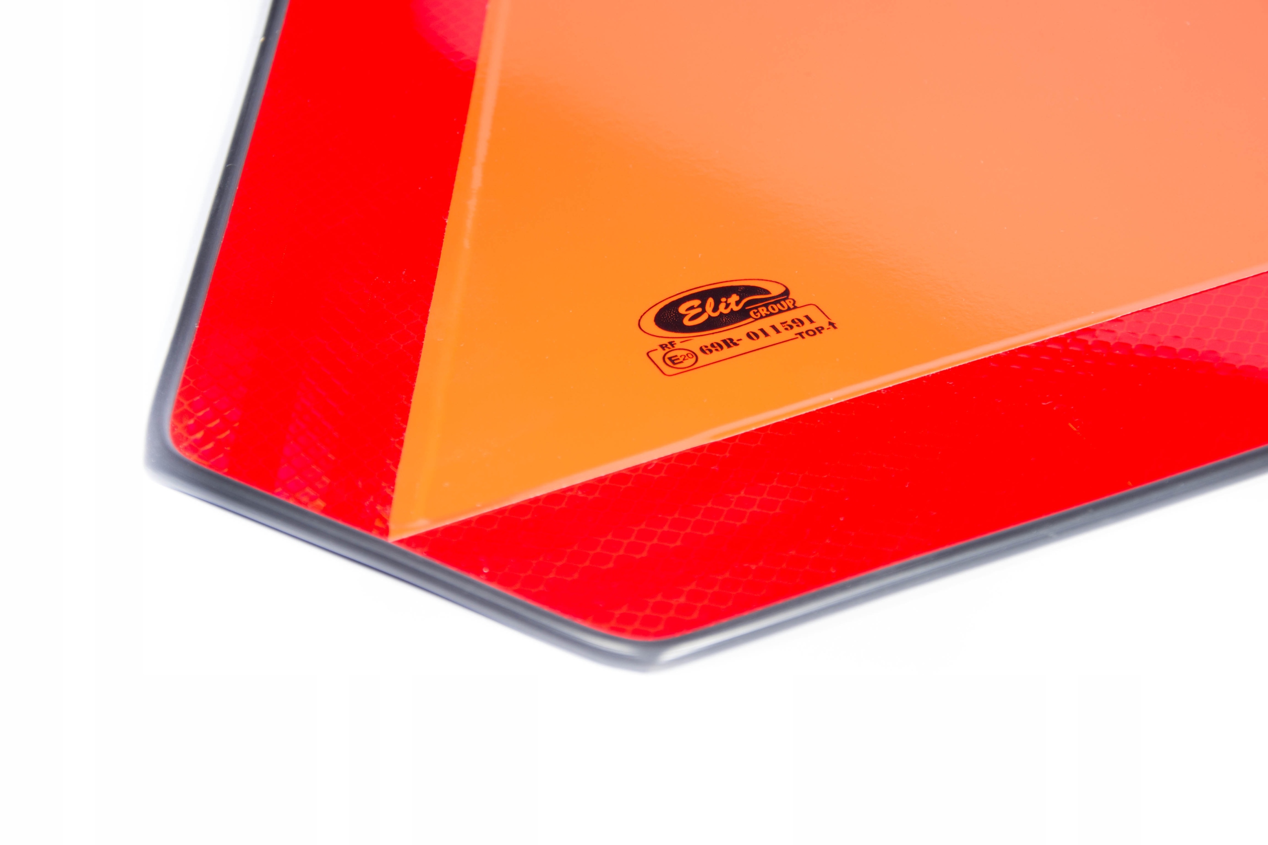 Треугольник изготовлен из алюминиевого листа. Средняя поверхность представляет собой комбинацию флуоресцентного и светоотражающего слоев. По краям треугольник закреплен резинкой.