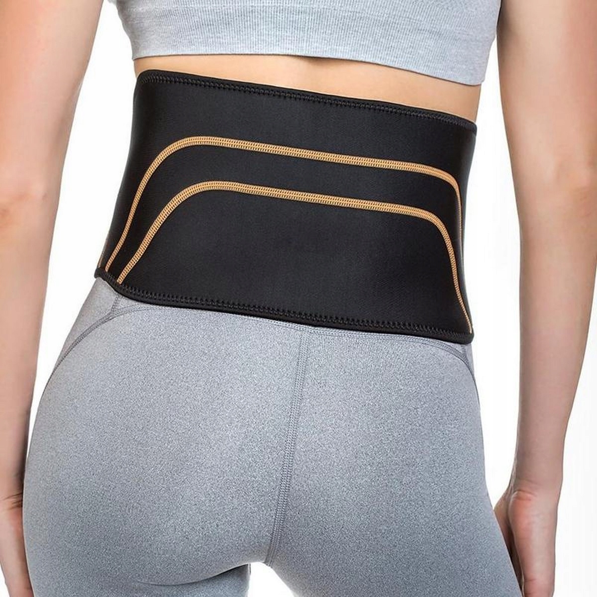 - Приложите ремень к поясничному отделу позвоночника так, чтобы его нижний край закрывал верхнюю часть ягодиц.