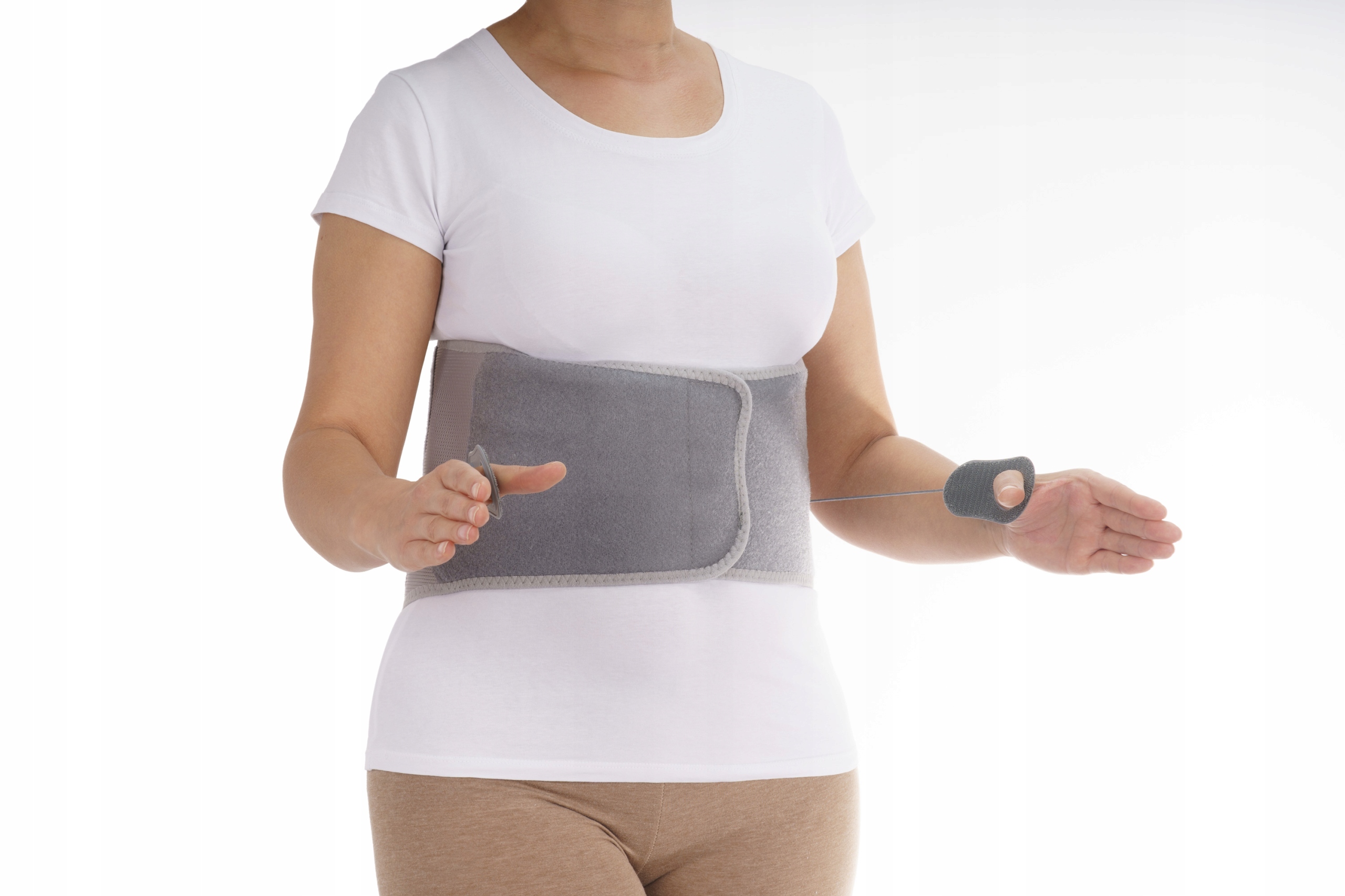 Корсет идеально подстраивается под форму вашей фигуры и регулирует силу его сжатия в соответствии с вашими потребностями и рекомендациями врача в конкретном случае. Жесткая задняя часть изолирована от тела пациента мягким наполнителем и приятным на ощупь материалом. Боковые стороны ремня выполнены из воздушной пористой ткани, которая позволяет коже дышать и гарантирует, что он всегда останется на месте. Пояс застегивается на большую и прочную липучку, как и ручки, затягивающие шнурки корсета.