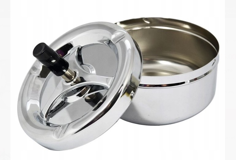 - ЗАКРЫТО - Запираемая вращающаяся пепельница с кнопкой, диаметр 11 см и высота 10 см.