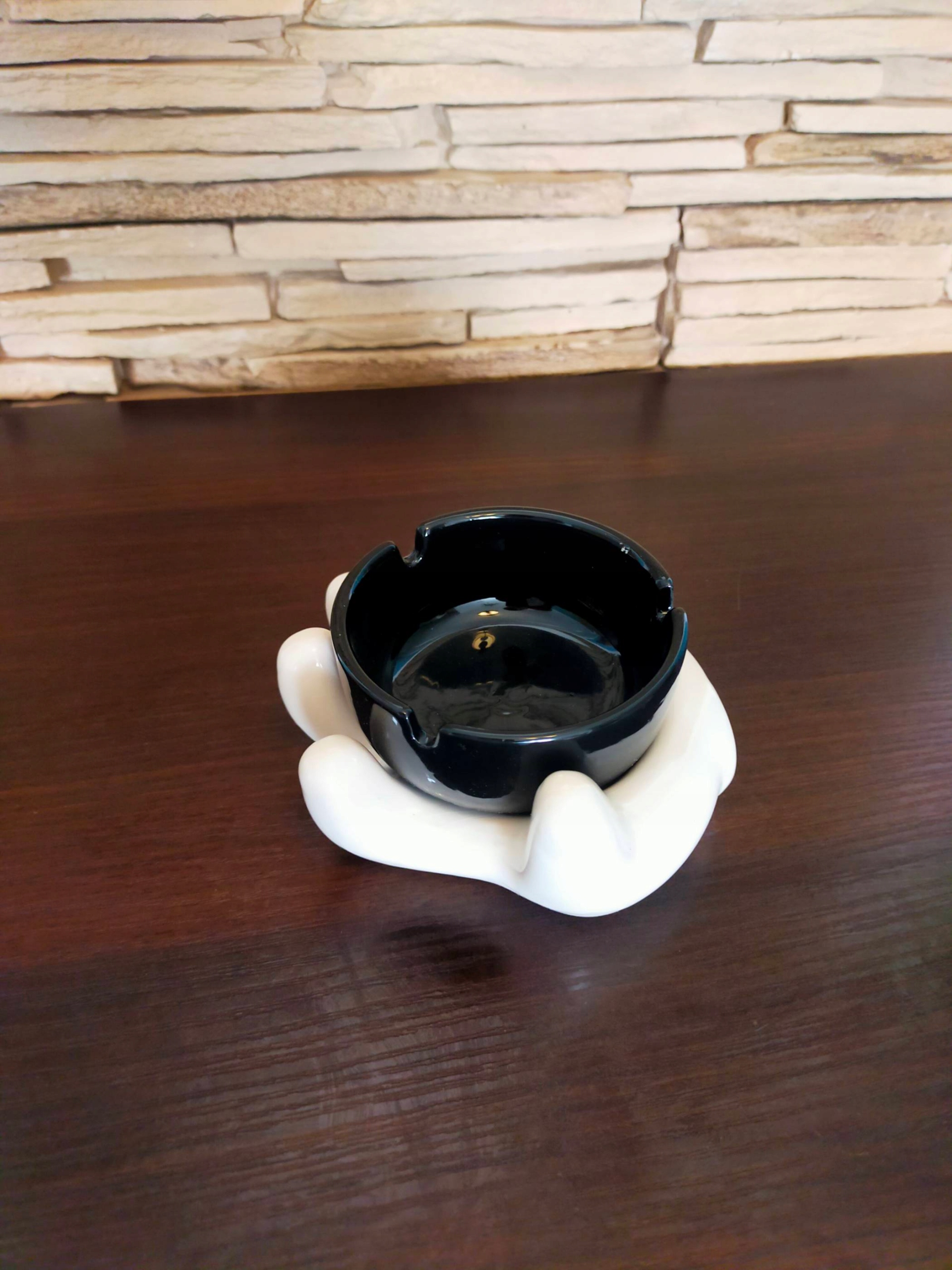 Ручка кремового цвета поддерживает пепельницу. Изделие имеет три места для сигарет. Креативная композиция с идеей, которой наверняка воспользуются ваши друзья.